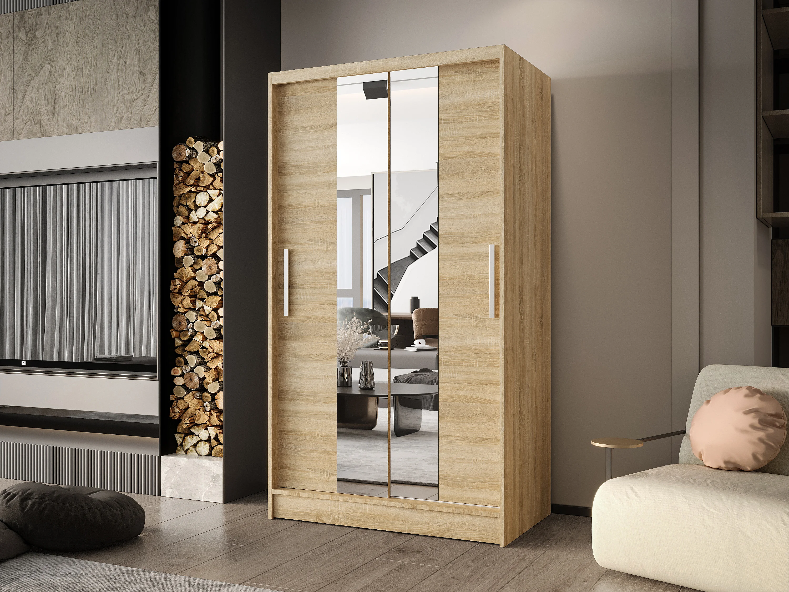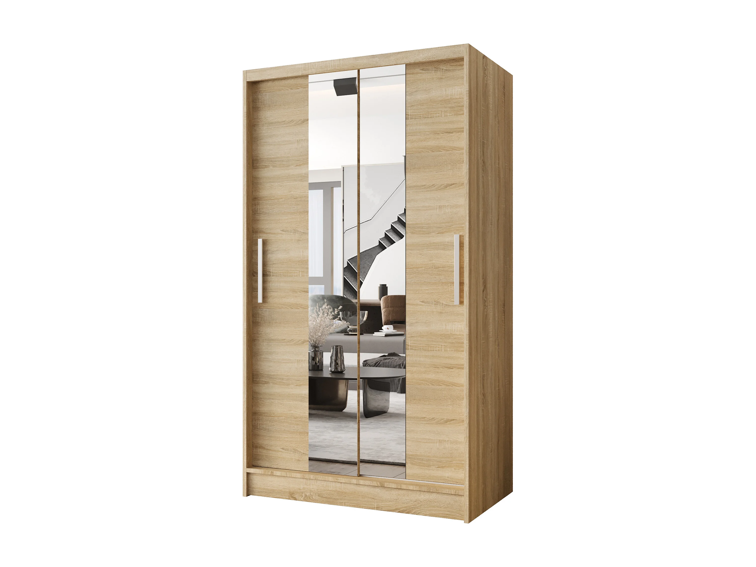 Zweitüriger Schiebeschrank mit Spiegel CHICAGO CA2, Regalböden und Kleiderstange (Sonoma)