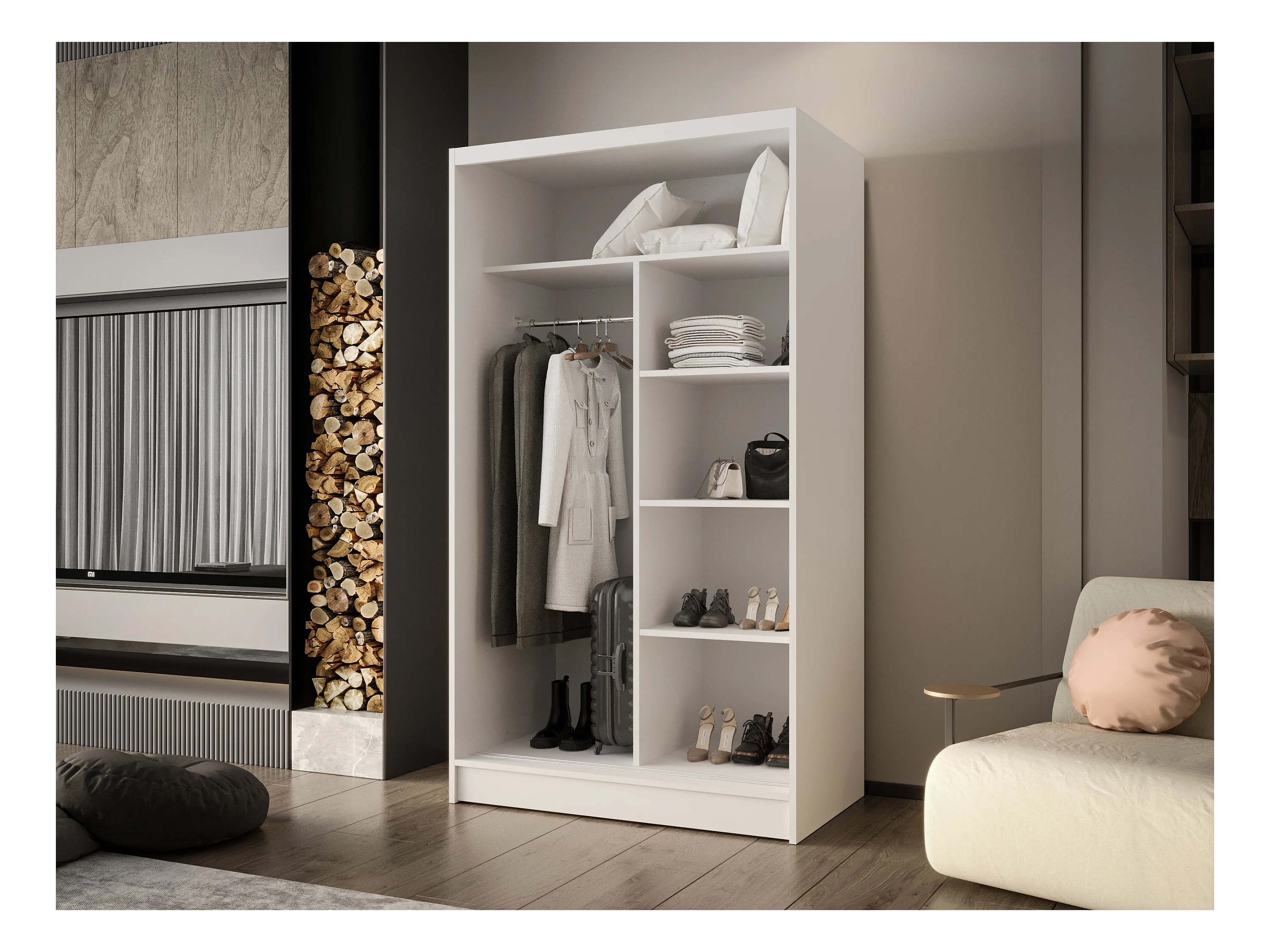 Zweitüriger Schiebeschrank mit Spiegel CHICAGO CA6, Regalböden und Kleiderstange (Schwarz/Artisan)