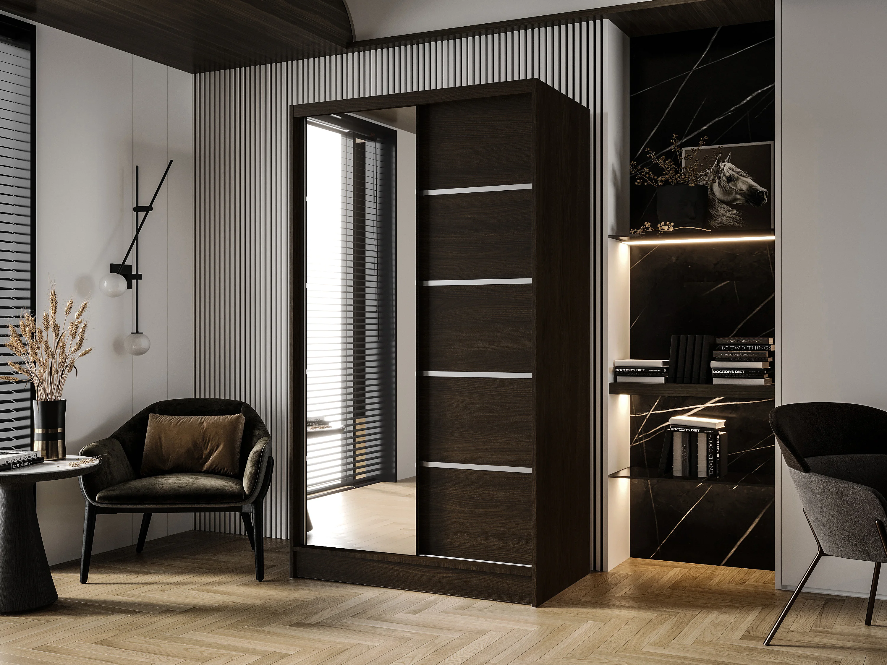 Zweitüriger Schiebeschrank mit Spiegel DETROIT D3, Regalböden und Kleiderstange (Choco)