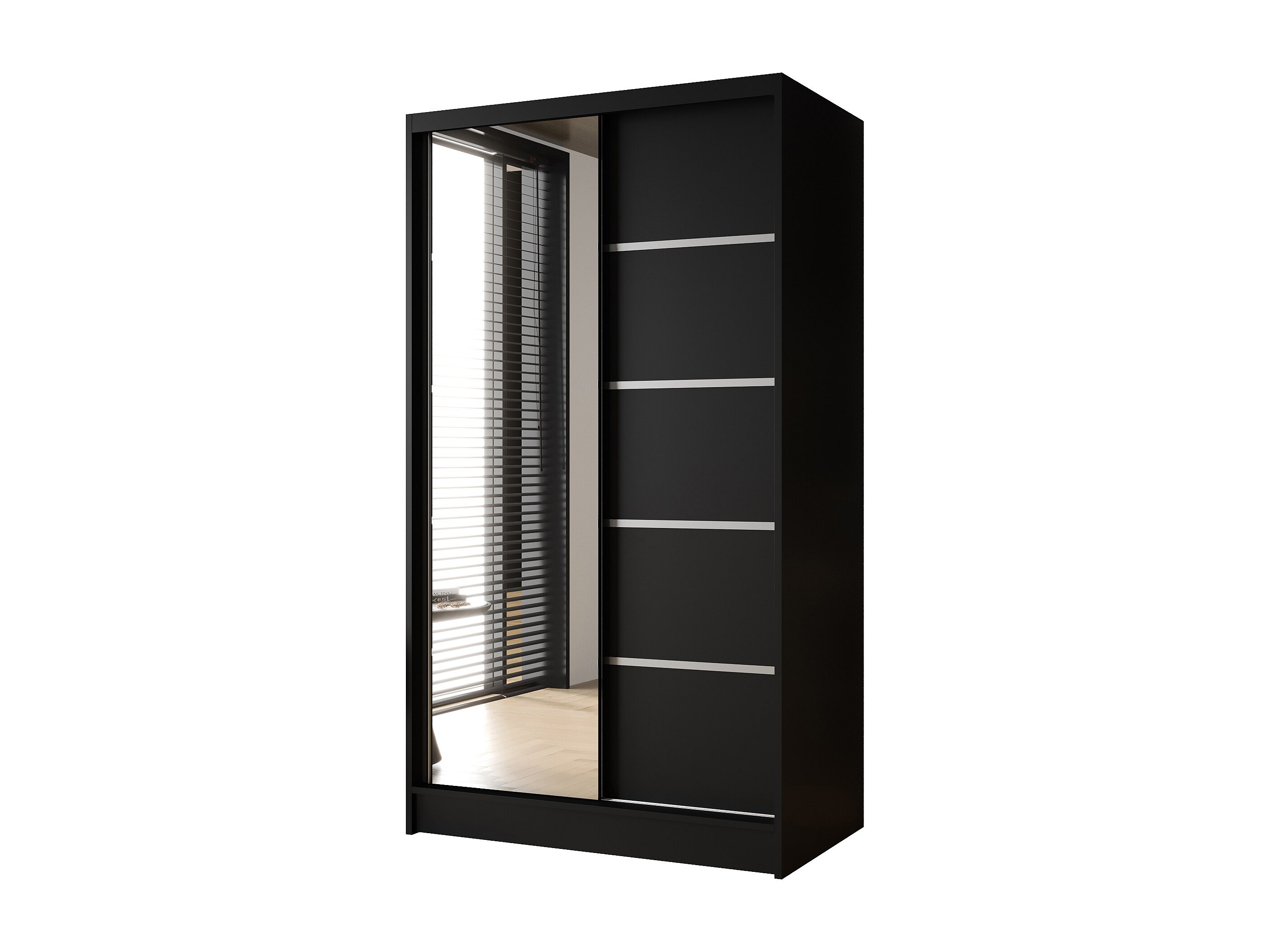 Zweitüriger Schiebeschrank mit Spiegel DETROIT D3, Regalböden und Kleiderstange (Schwarz)
