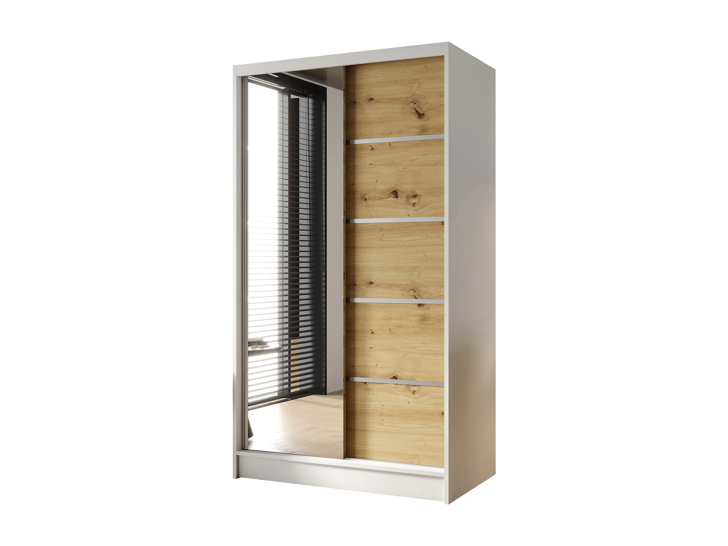 Zweitüriger Schiebeschrank mit Spiegel DETROIT D3, Regalböden und Kleiderstange (Weiß/Artisan)