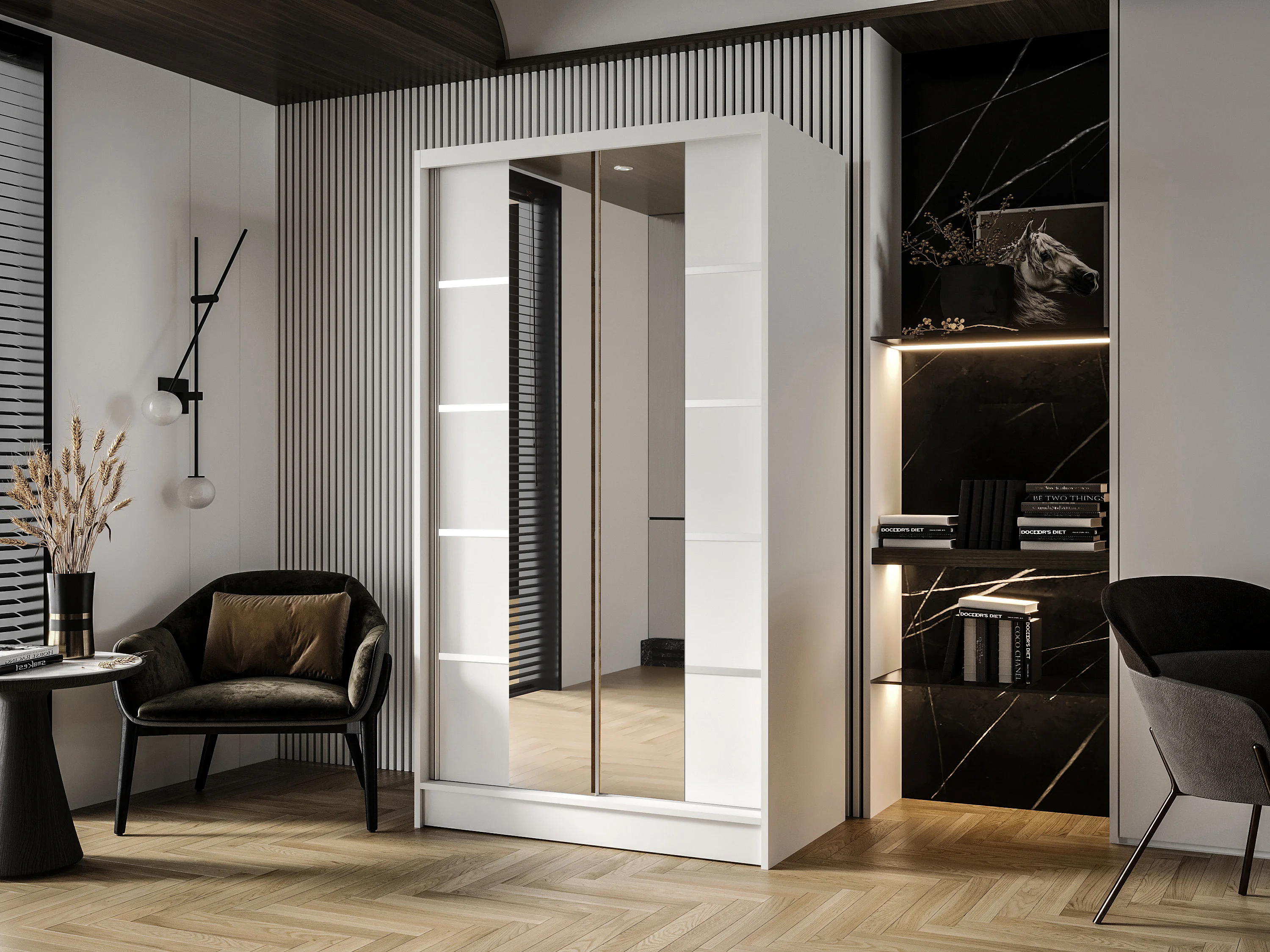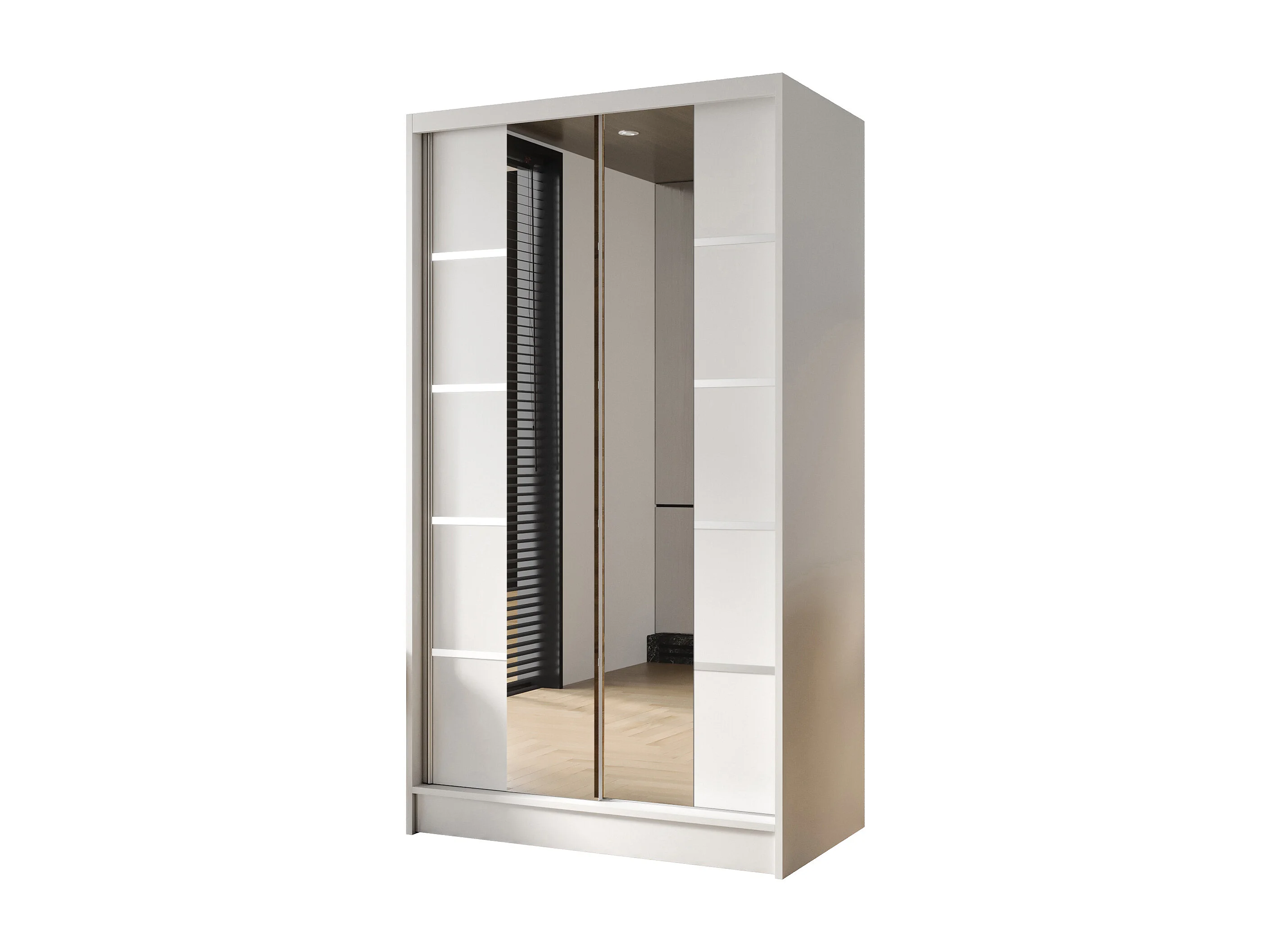 Zweitüriger Schiebeschrank mit Spiegel DETROIT D5, Regalböden und Kleiderstange (Weiß)