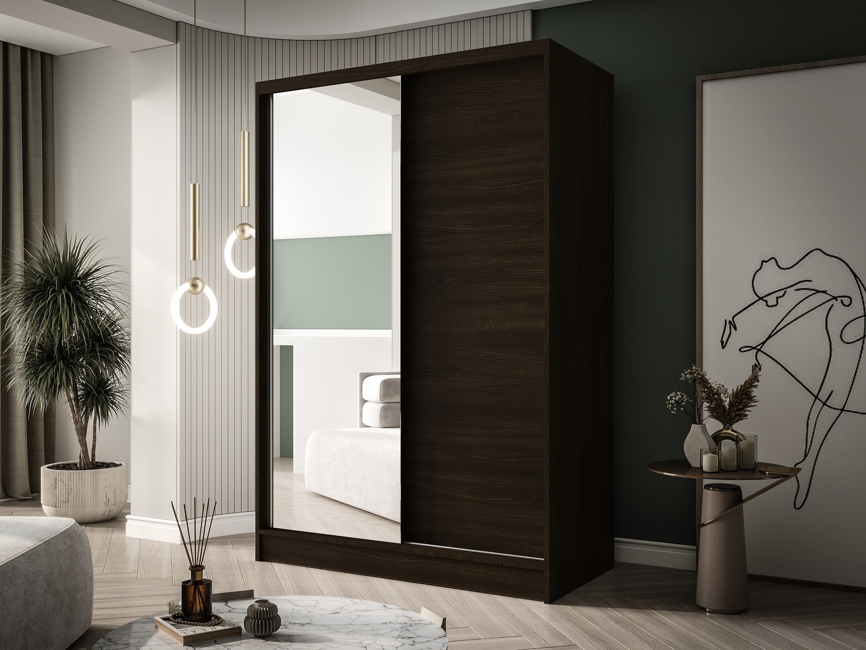Zweitüriger Schiebeschrank mit Spiegel LAUSANNE L1, Regalböden und Kleiderstange (Choco)