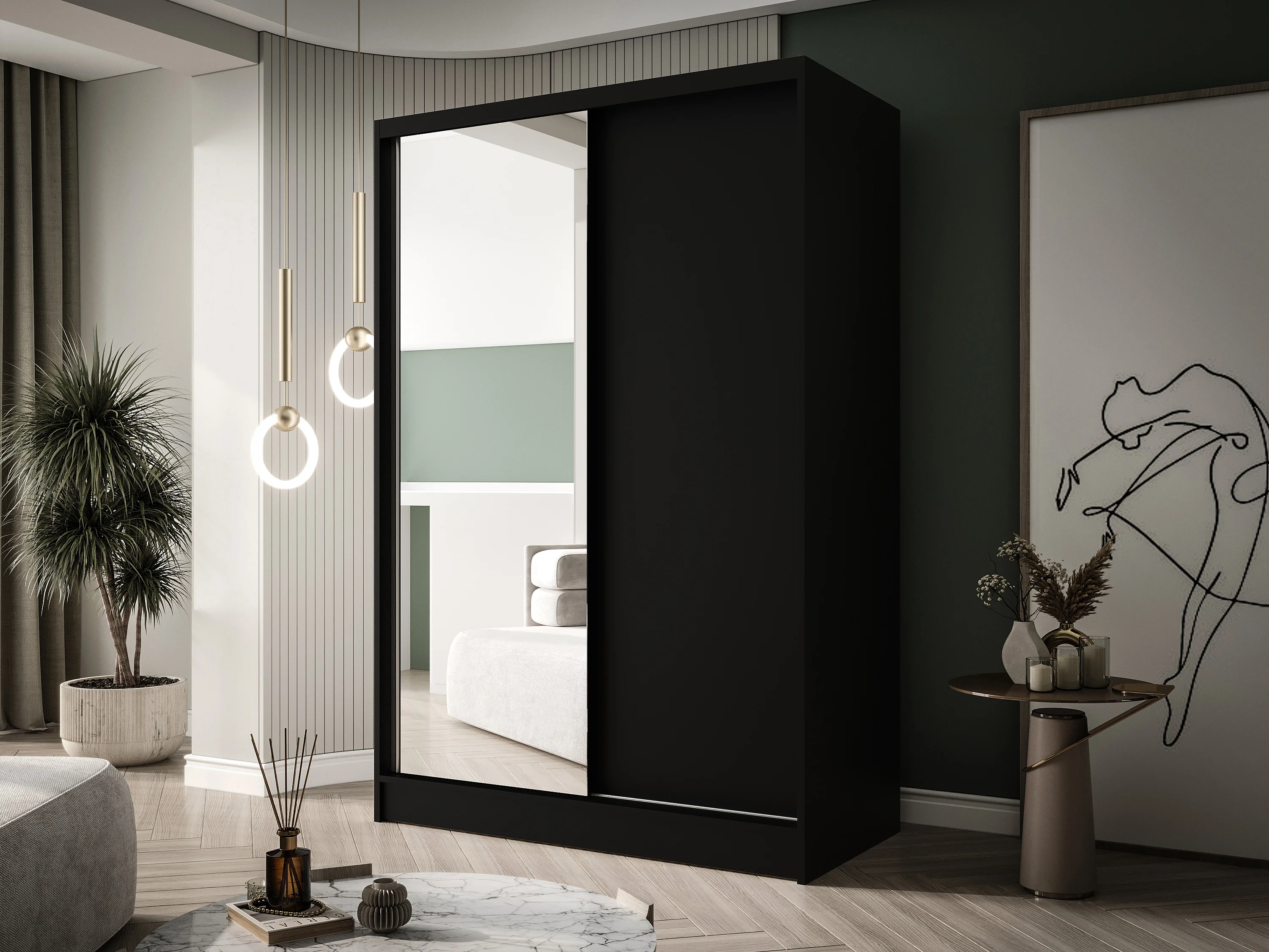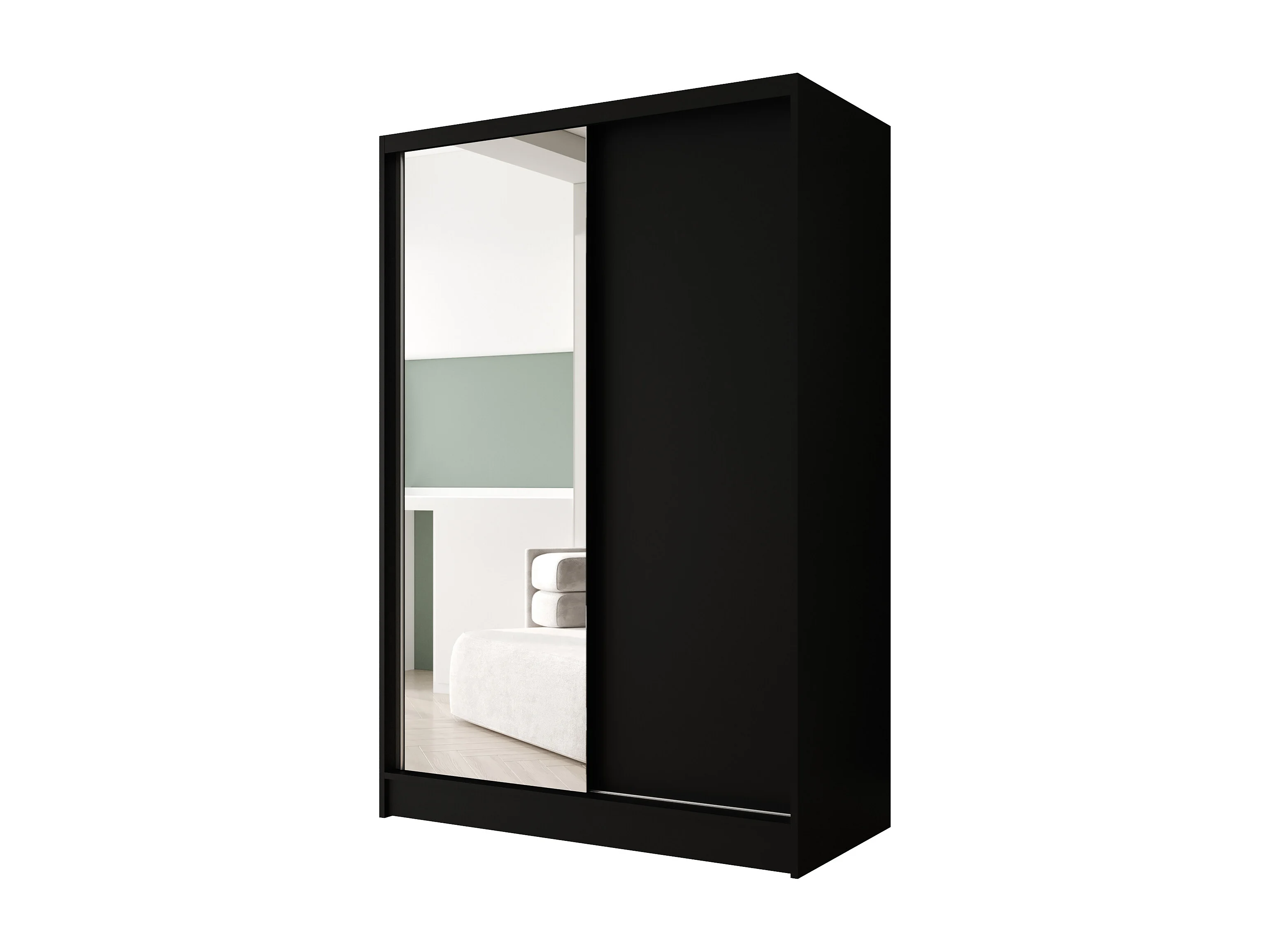 Zweitüriger Schiebeschrank mit Spiegel LAUSANNE L1, Regalböden und Kleiderstange (Schwarz)