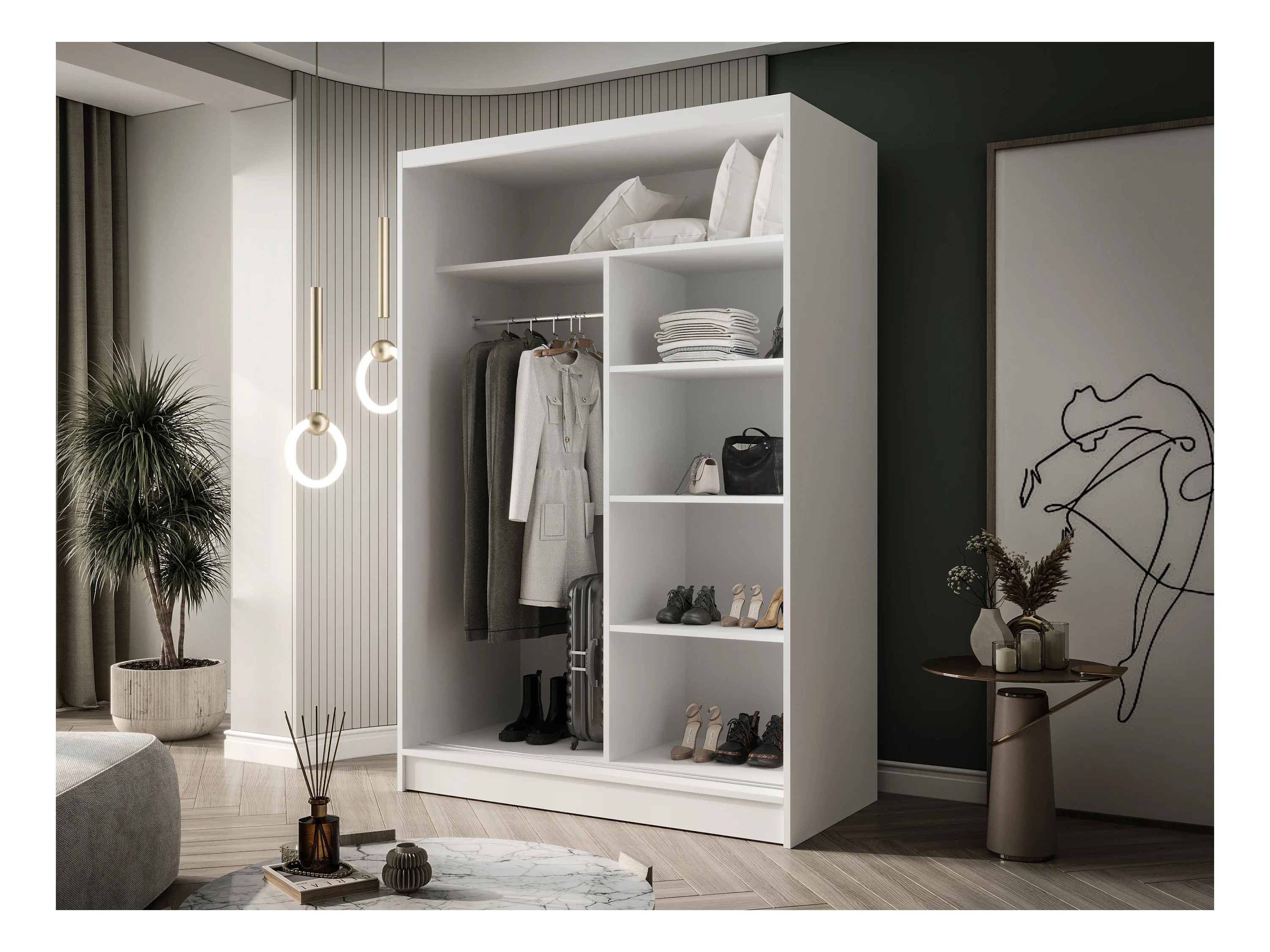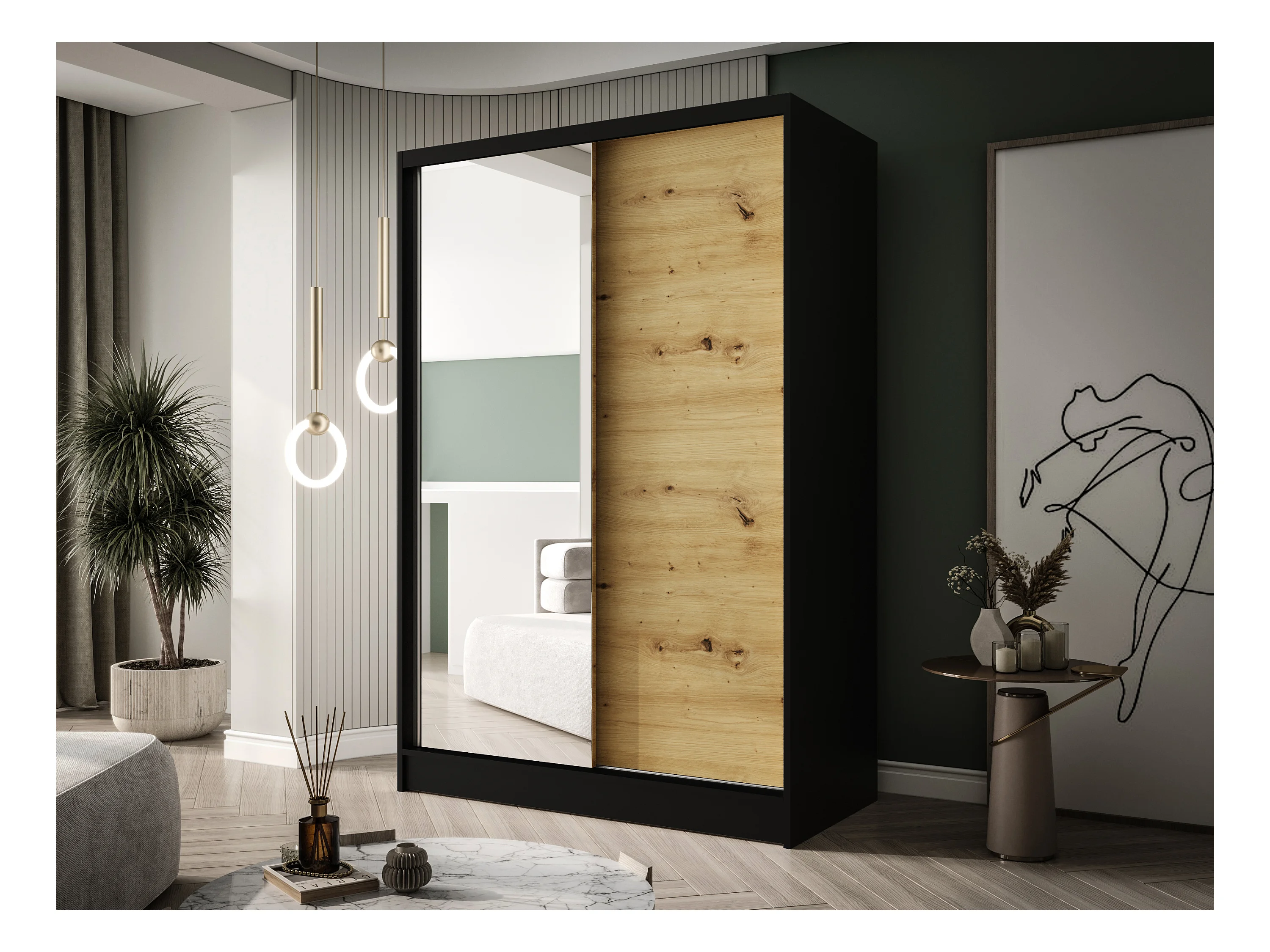 Zweitüriger Schiebeschrank mit Spiegel LAUSANNE L1, Regalböden und Kleiderstange (Schwarz/Artisan)