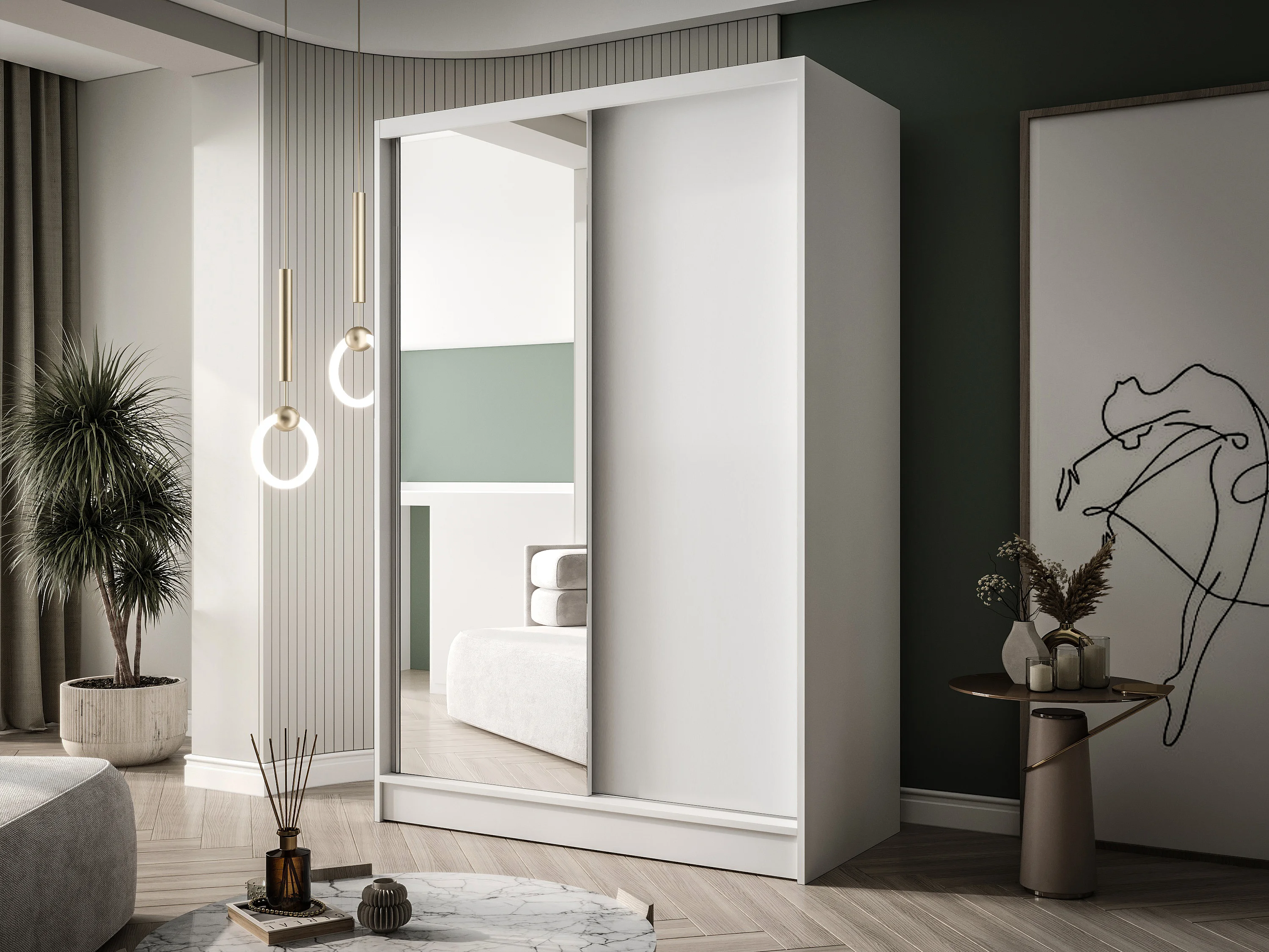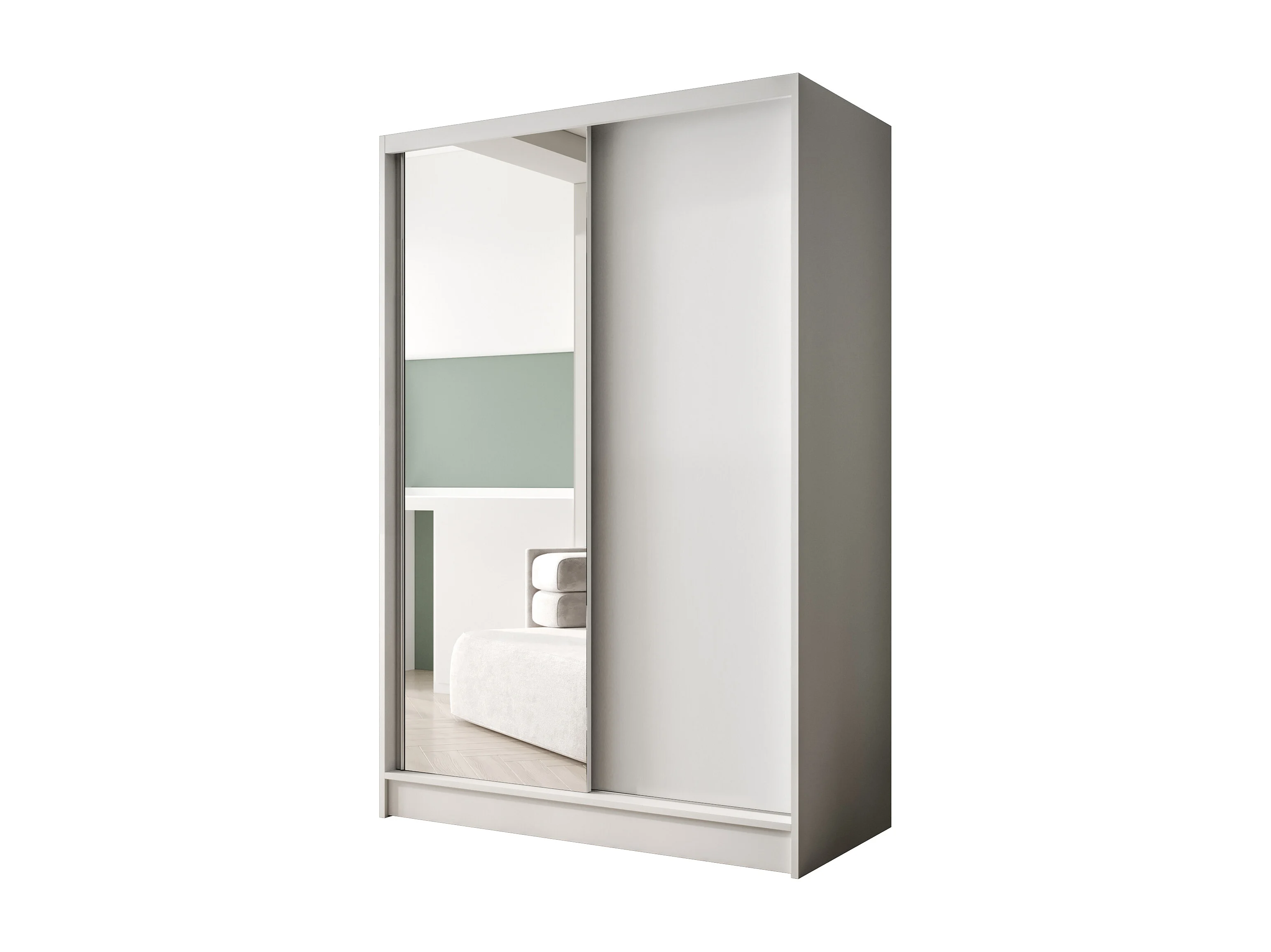 Zweitüriger Schiebeschrank mit Spiegel LAUSANNE L1, Regalböden und Kleiderstange (Weiß)