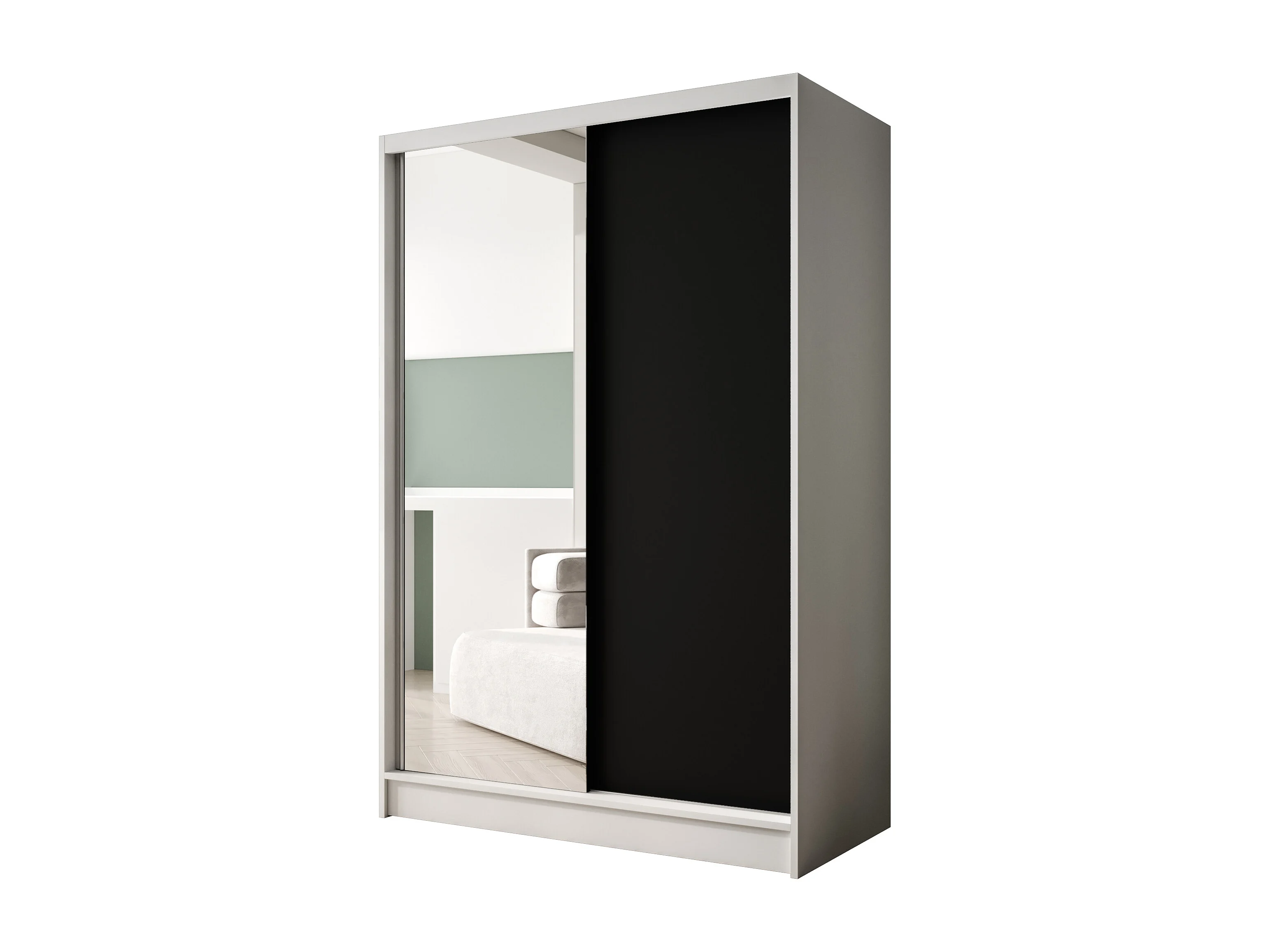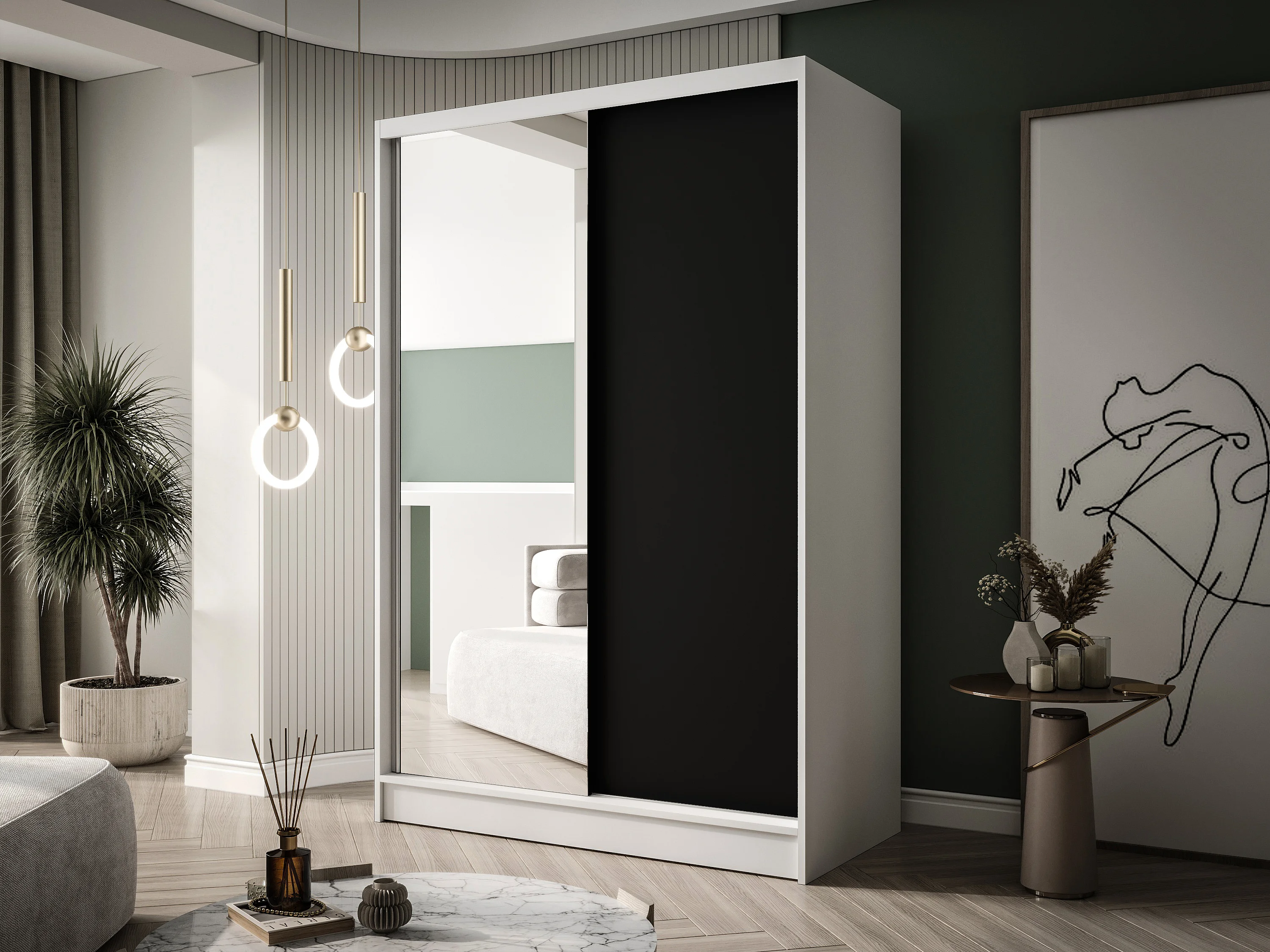 Zweitüriger Schiebeschrank mit Spiegel LAUSANNE L1, Regalböden und Kleiderstange (Weiß/Schwarz)