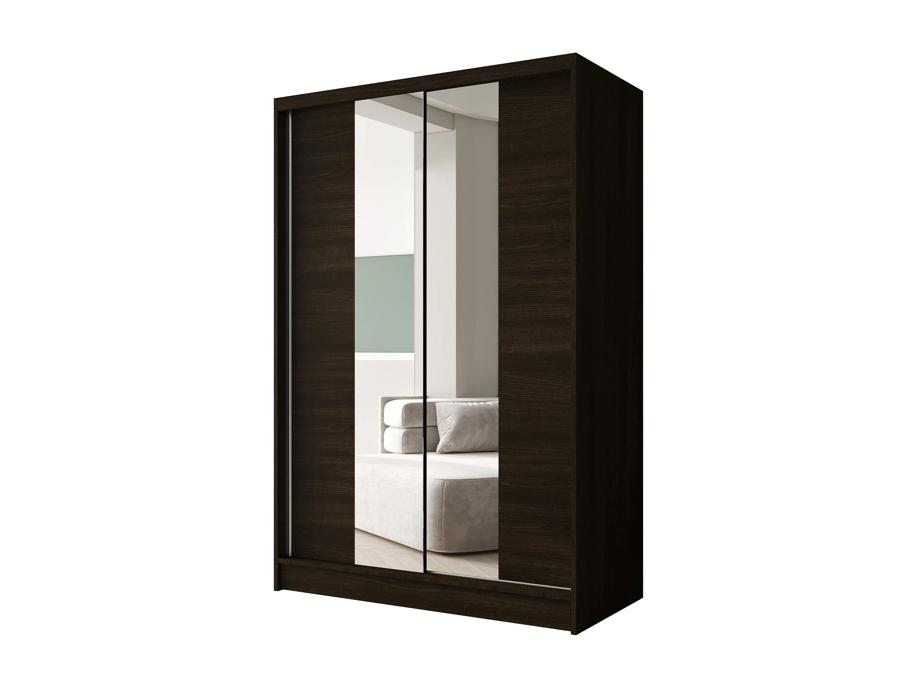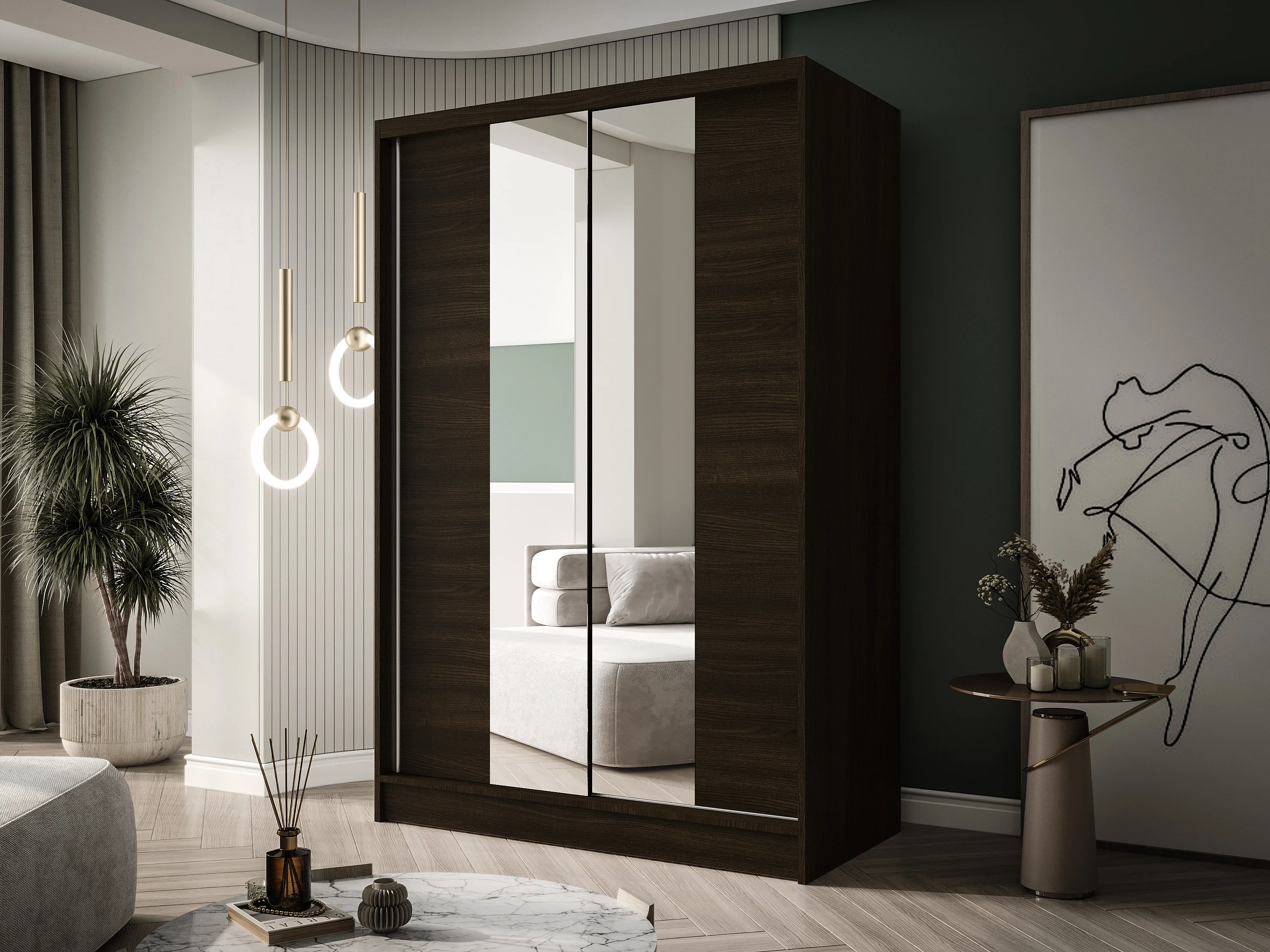 Zweitüriger Schiebeschrank mit Spiegel LAUSANNE L2, Regalböden und Kleiderstange (Choco)