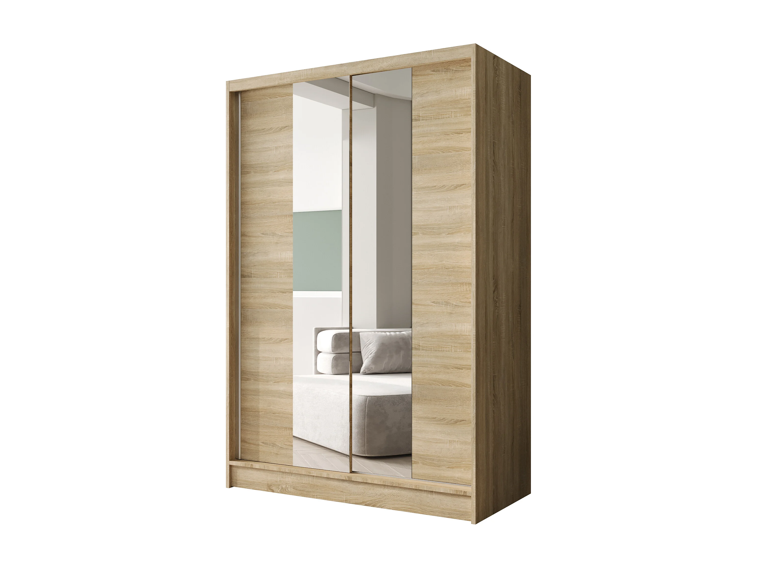 Zweitüriger Schiebeschrank mit Spiegel LAUSANNE L2, Regalböden und Kleiderstange (Sonoma)