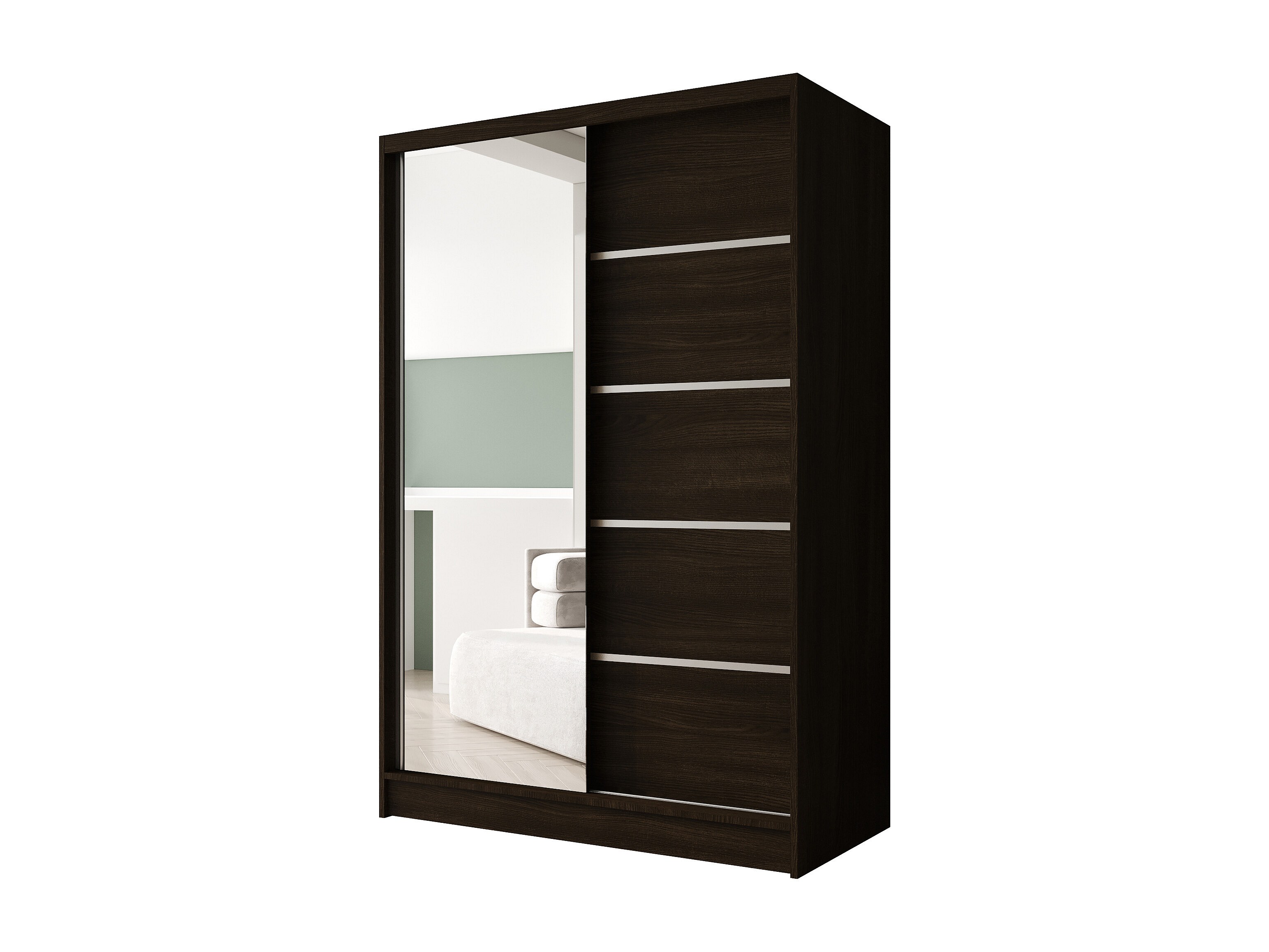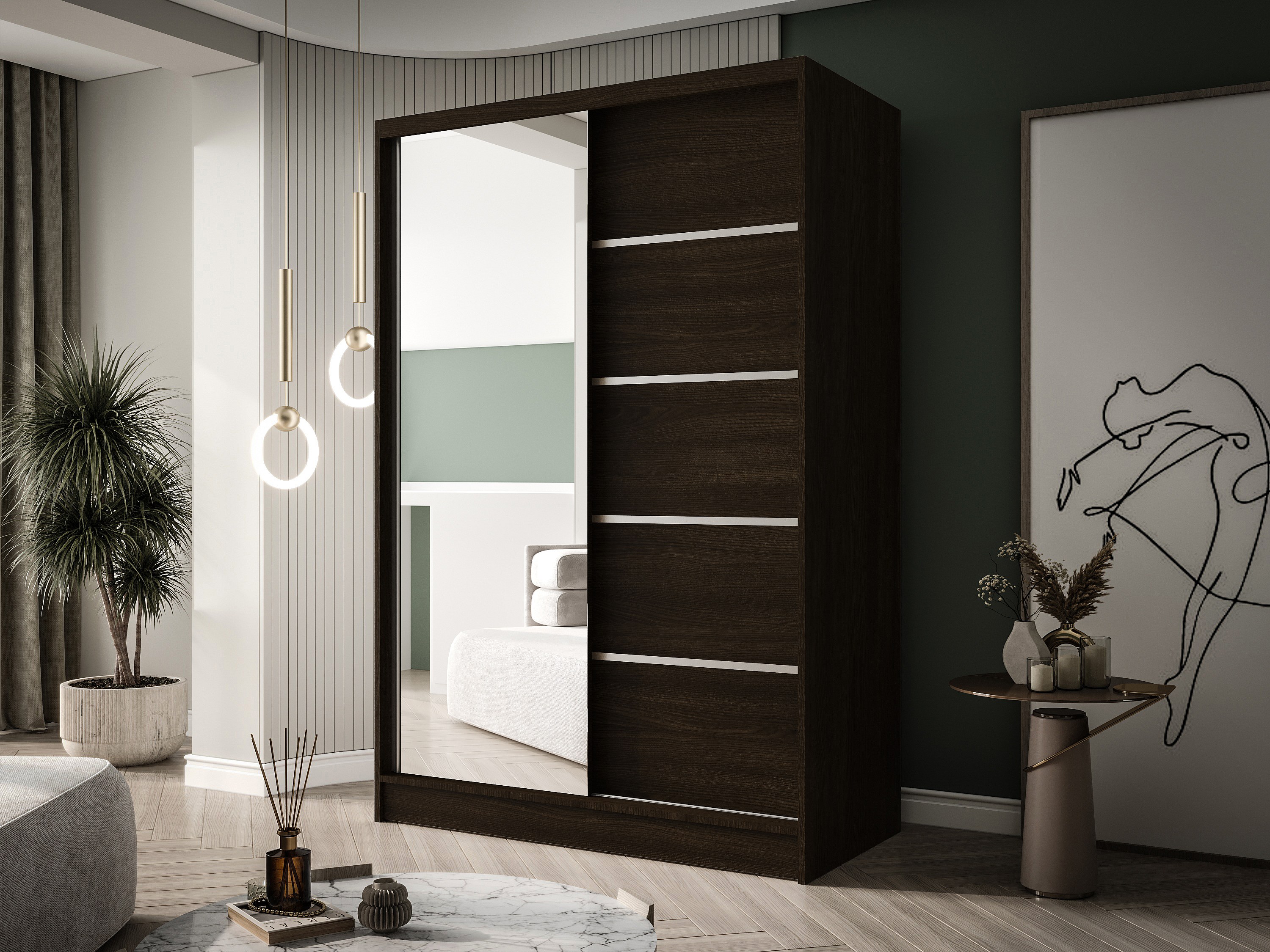 Zweitüriger Schiebeschrank mit Spiegel LAUSANNE L3, Regalböden und Kleiderstange (Choco)
