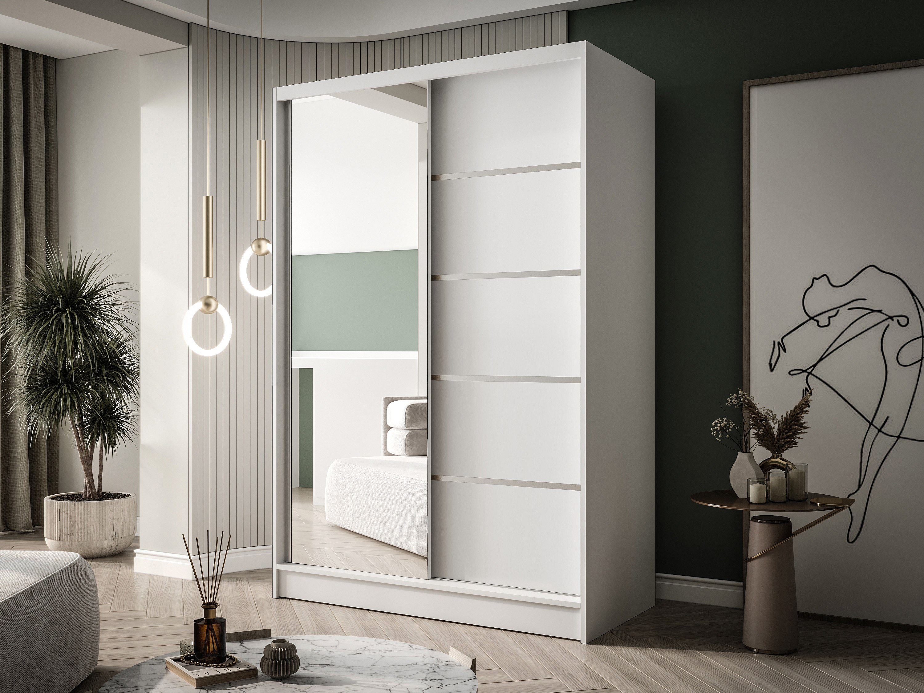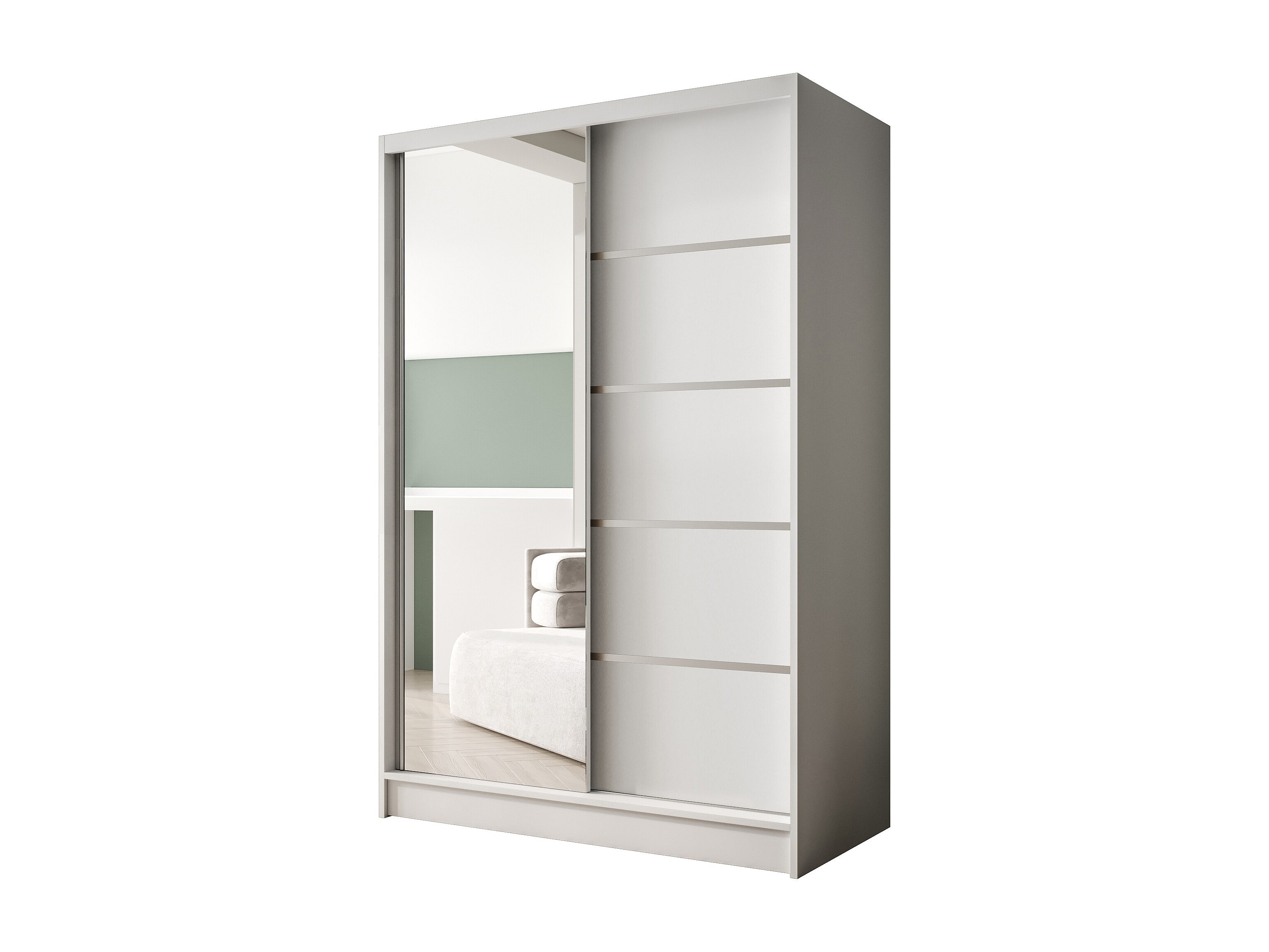 Zweitüriger Schiebeschrank mit Spiegel LAUSANNE L3, Regalböden und Kleiderstange (Weiß)