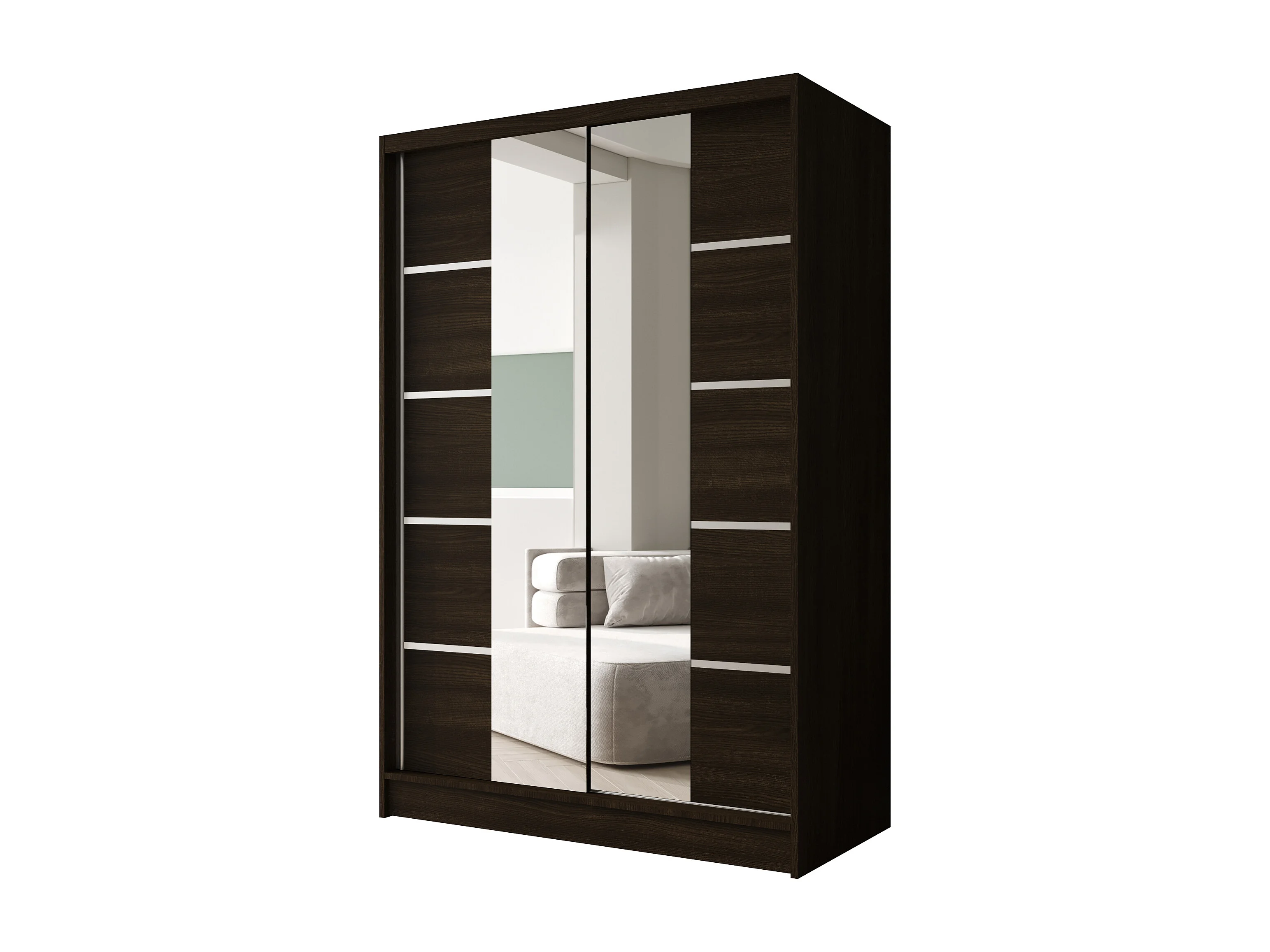 Zweitüriger Schiebeschrank mit Spiegel LAUSANNE L5, Regalböden und Kleiderstange (Choco)