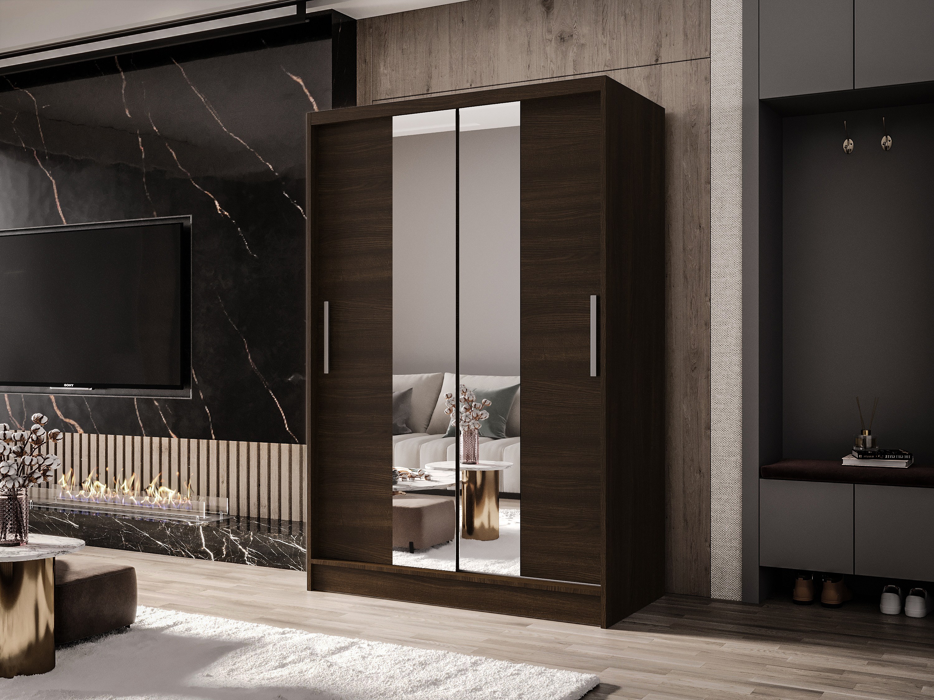 Zweitüriger Schiebeschrank mit Spiegel MESA M2 Choco mit Regalböden und Kleiderstange
