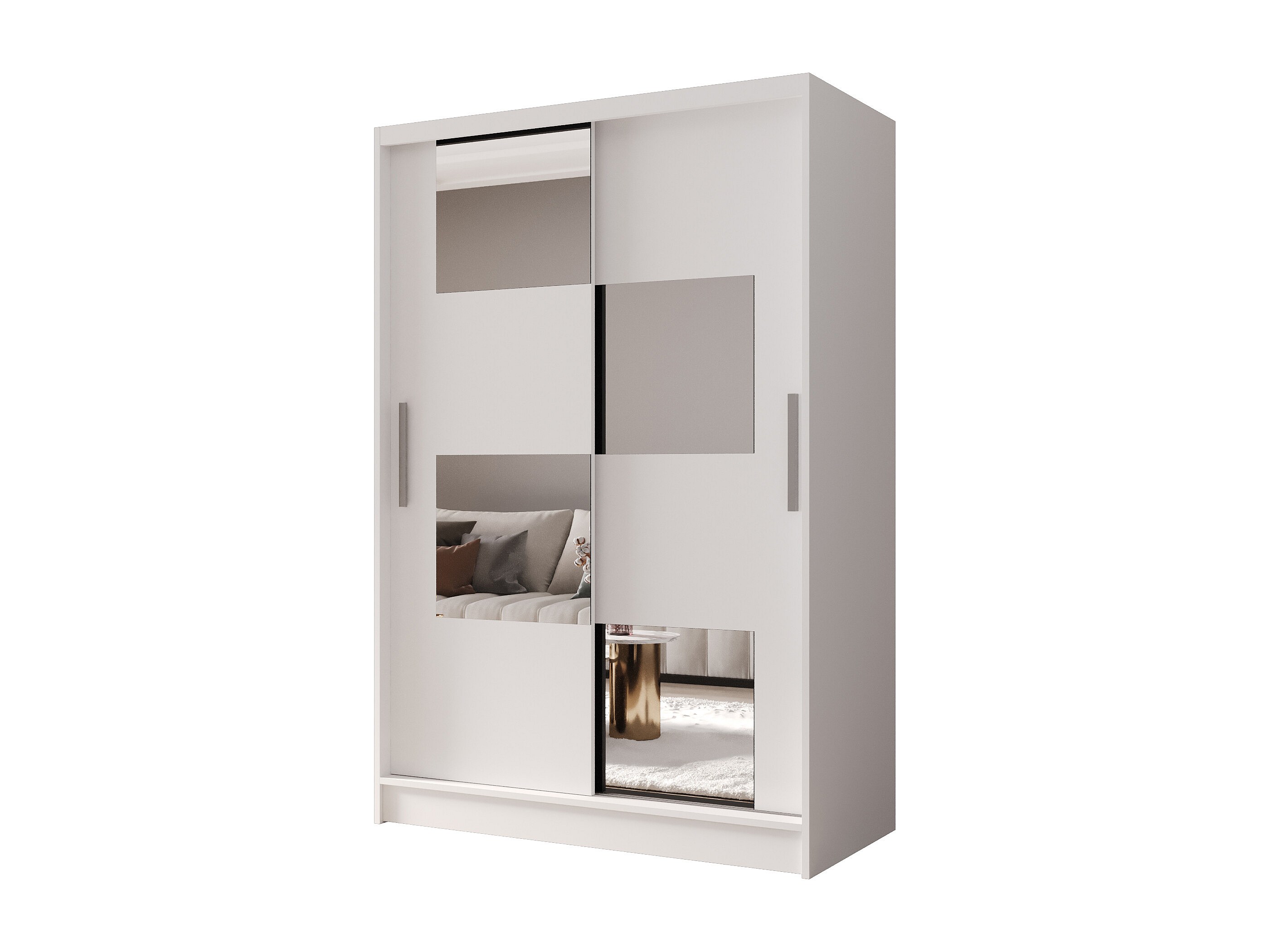 Zweitüriger Schiebeschrank mit Spiegel MESA M3 Weiß mit Regalböden und Kleiderstange