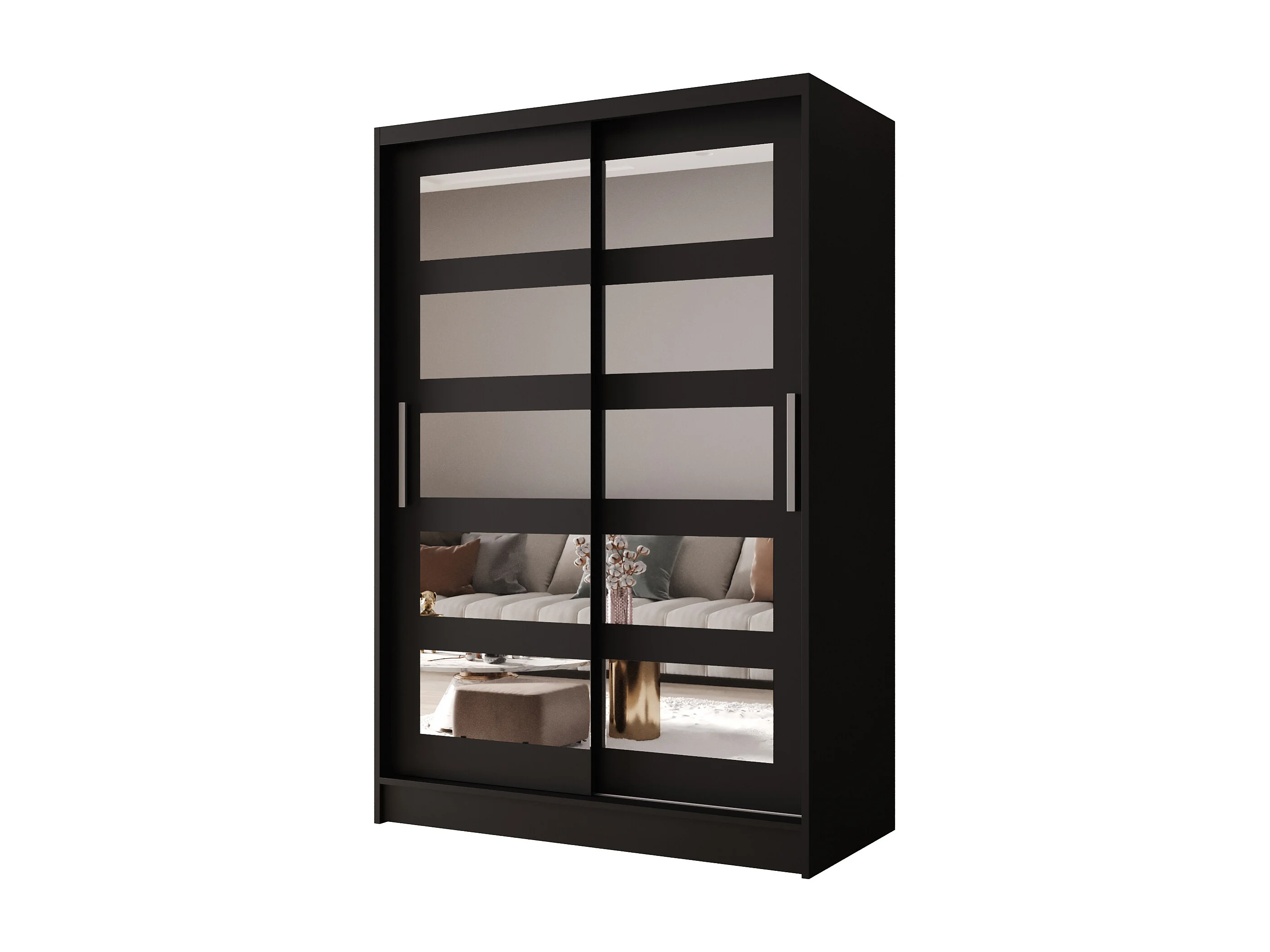 Zweitüriger Schiebeschrank mit Spiegel MESA M4 Schwarz mit Regalböden und Kleiderstange
