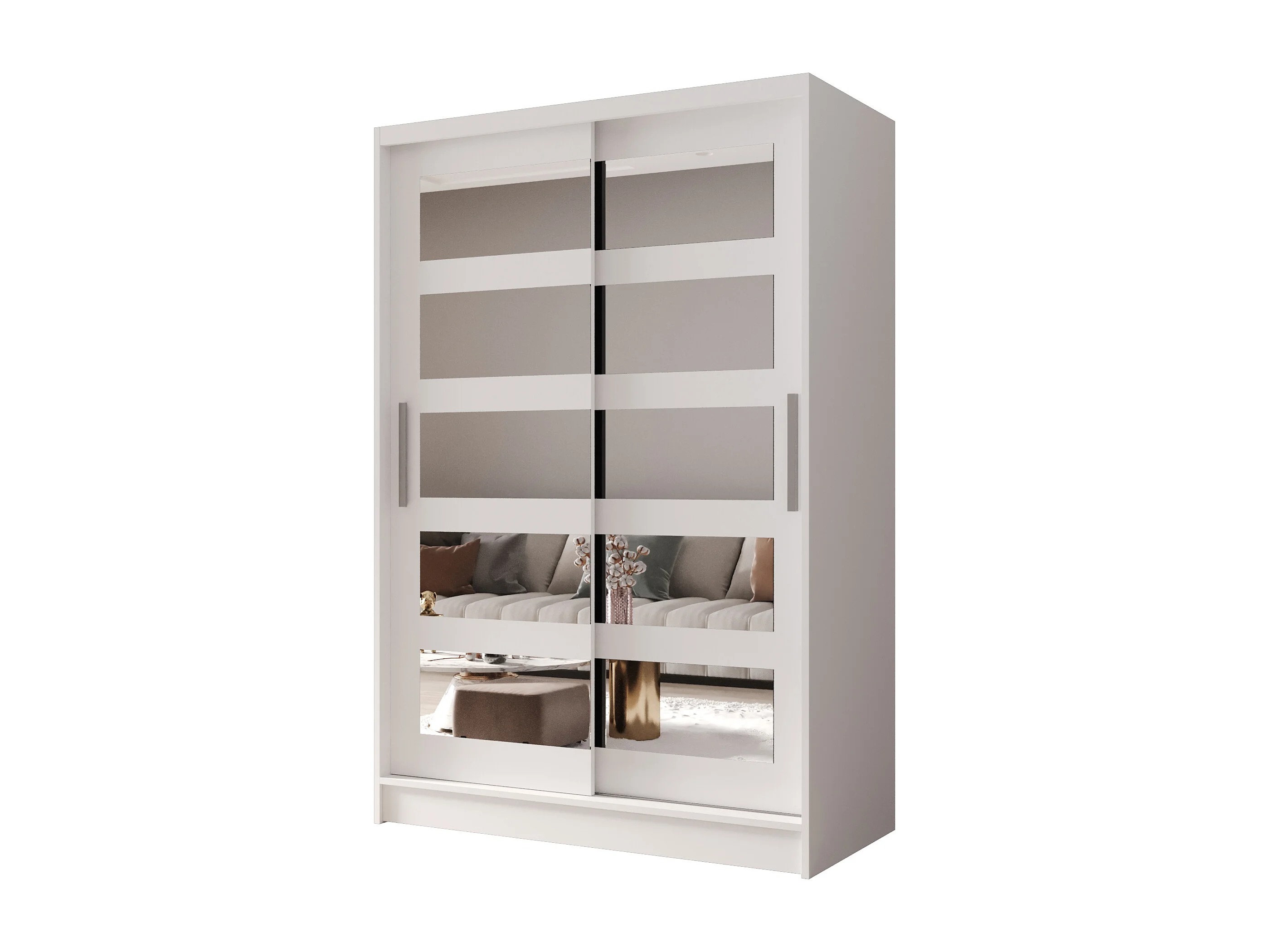Zweitüriger Schiebeschrank mit Spiegel MESA M4 Weiß mit Regalböden und Kleiderstange