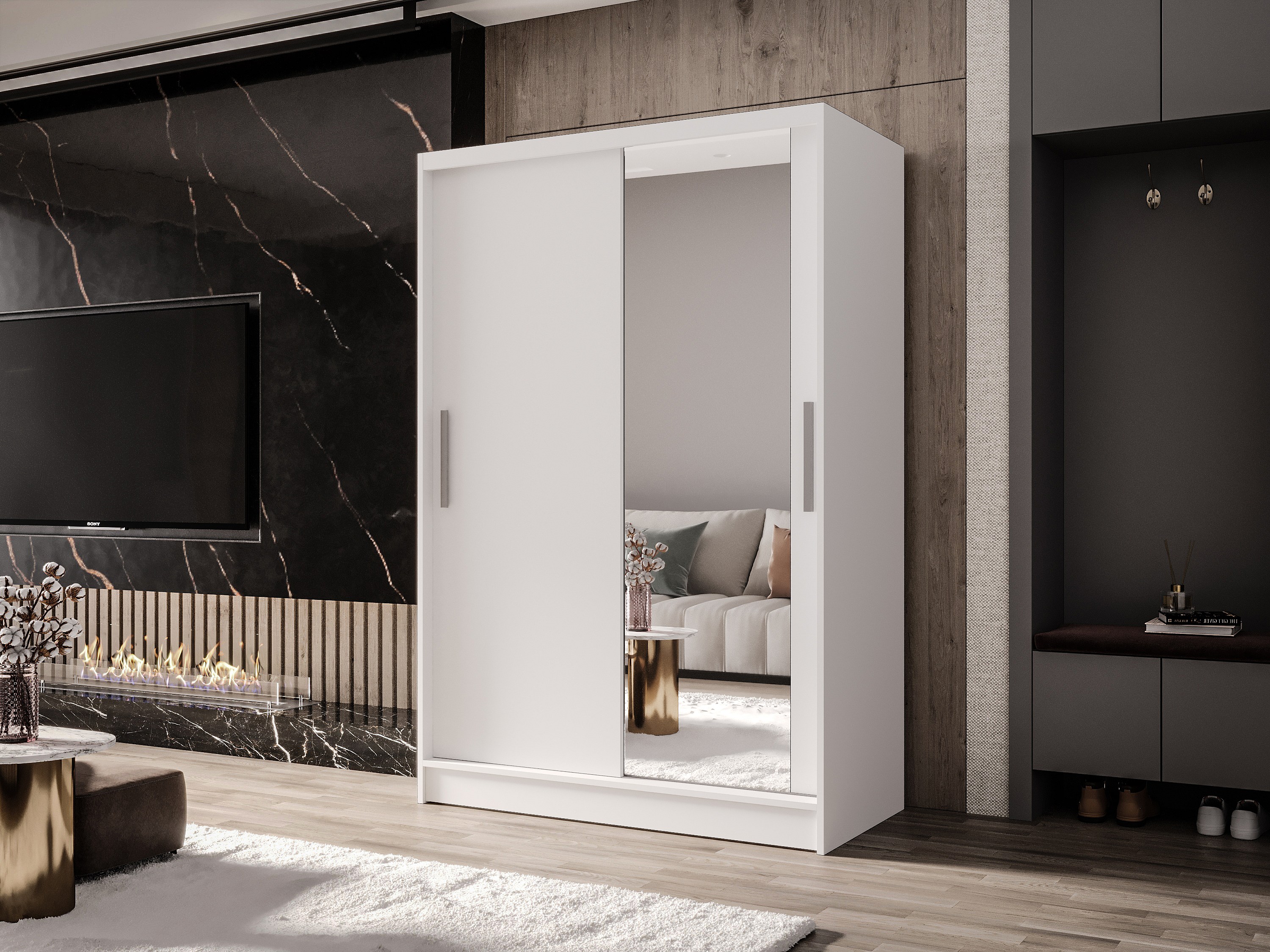 Zweitüriger Schiebeschrank mit Spiegel MESA M6 Weiß mit Regalböden und Kleiderstange