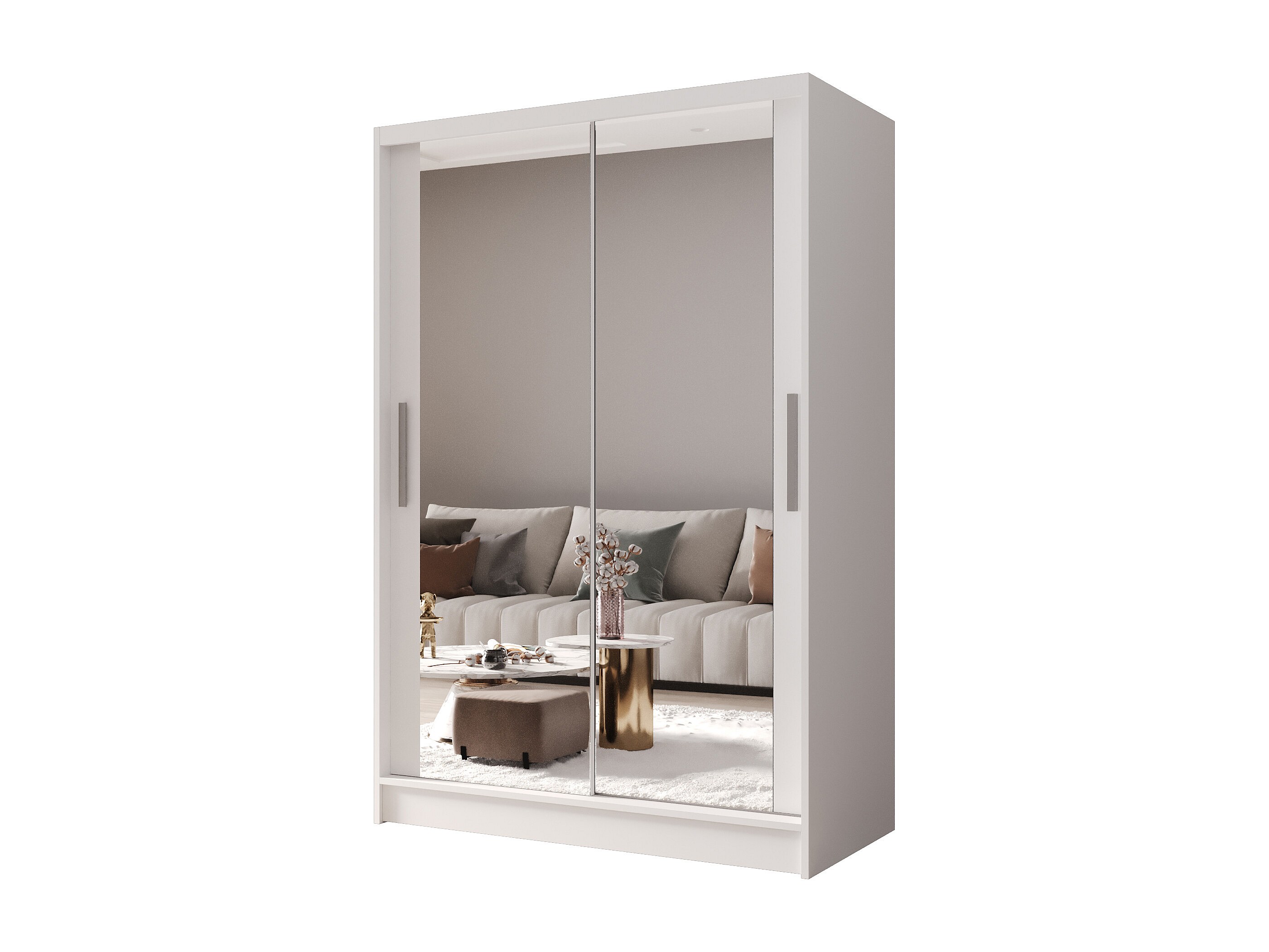 Zweitüriger Schiebeschrank mit Spiegel MESA M7 Weiß mit Regalböden und Kleiderstange