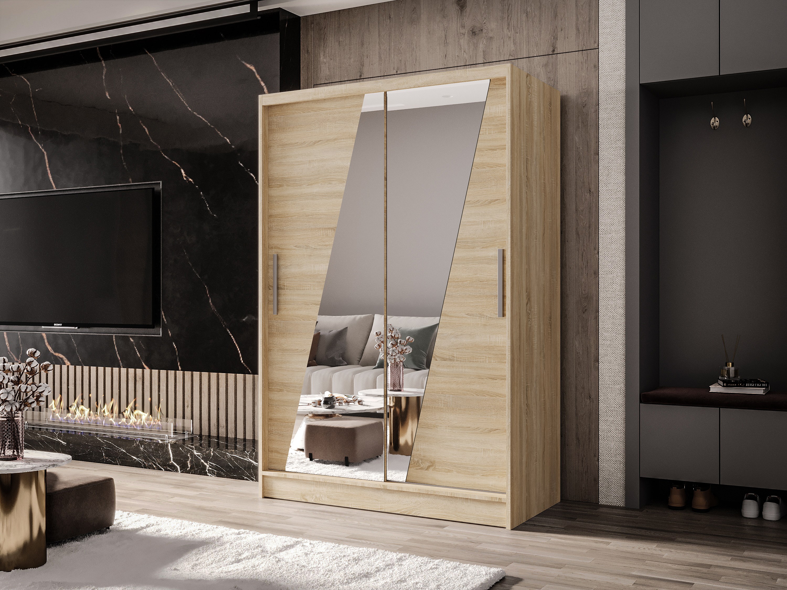 Zweitüriger Schiebeschrank mit Spiegel MESA M8 Sonoma mit Regalböden und Kleiderstange