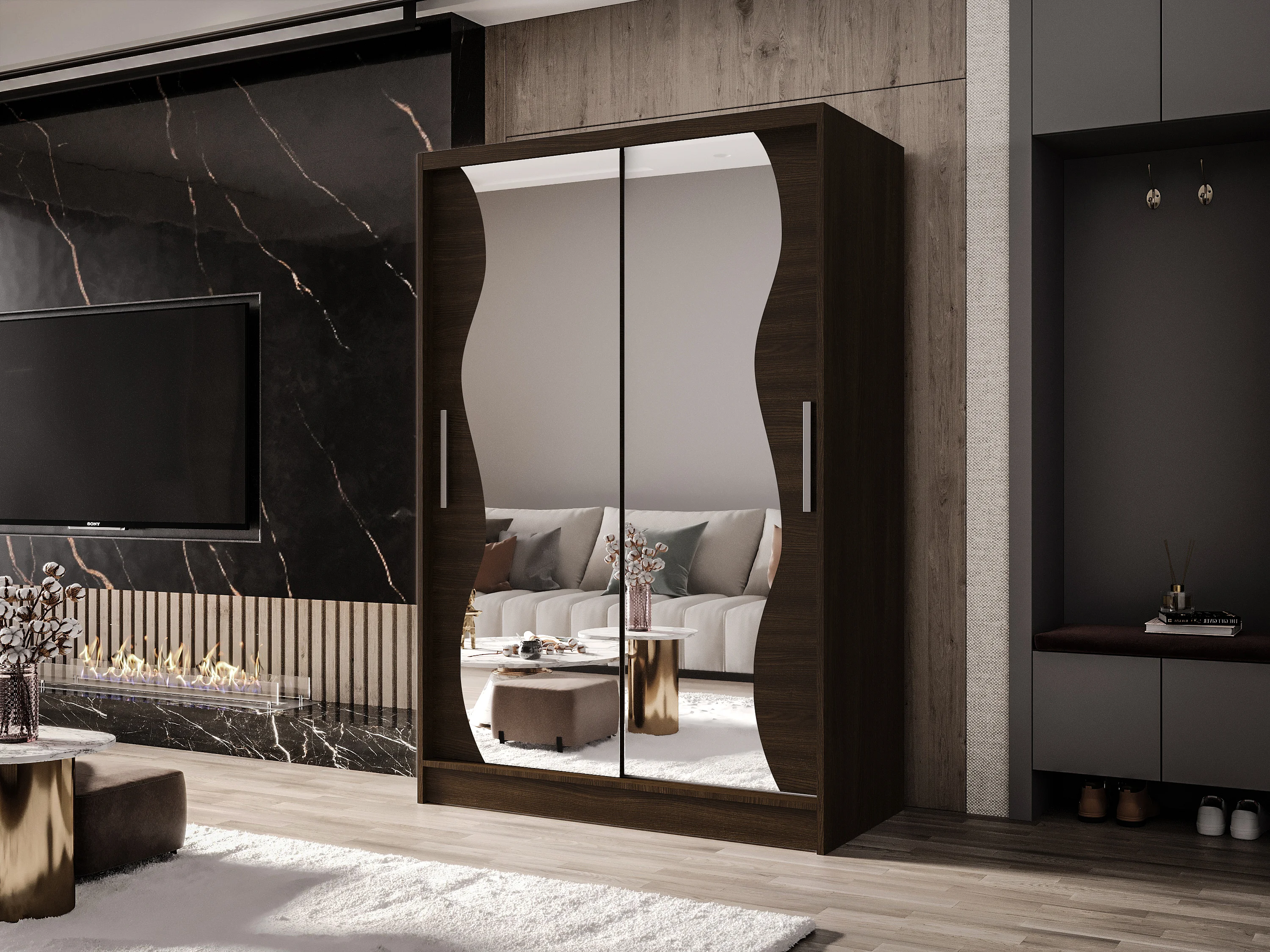 Zweitüriger Schiebeschrank mit Spiegel MESA MS Choco mit Regalböden und Kleiderstange