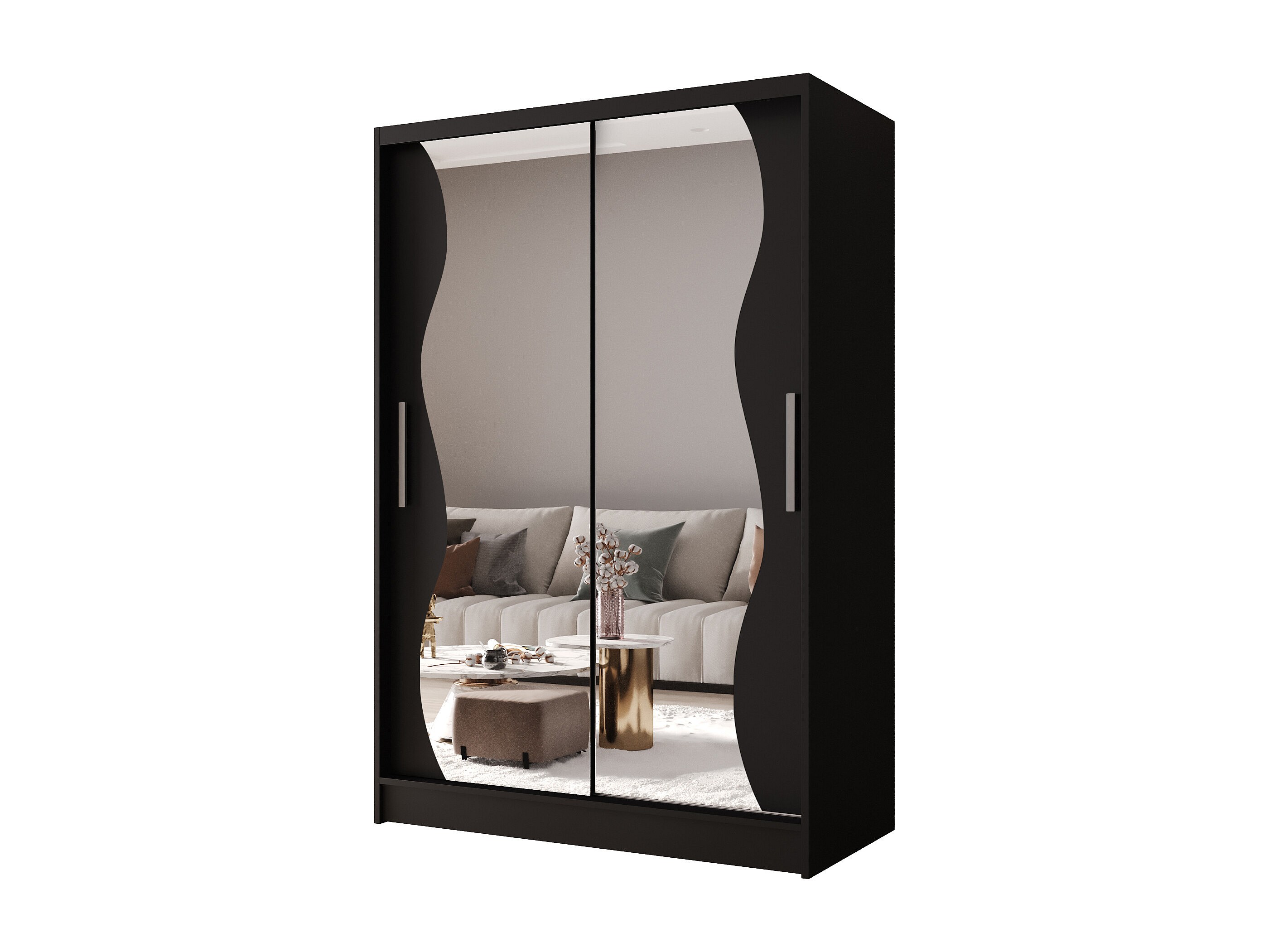 Zweitüriger Schiebeschrank mit Spiegel MESA MS Schwarz mit Regalböden und Kleiderstange