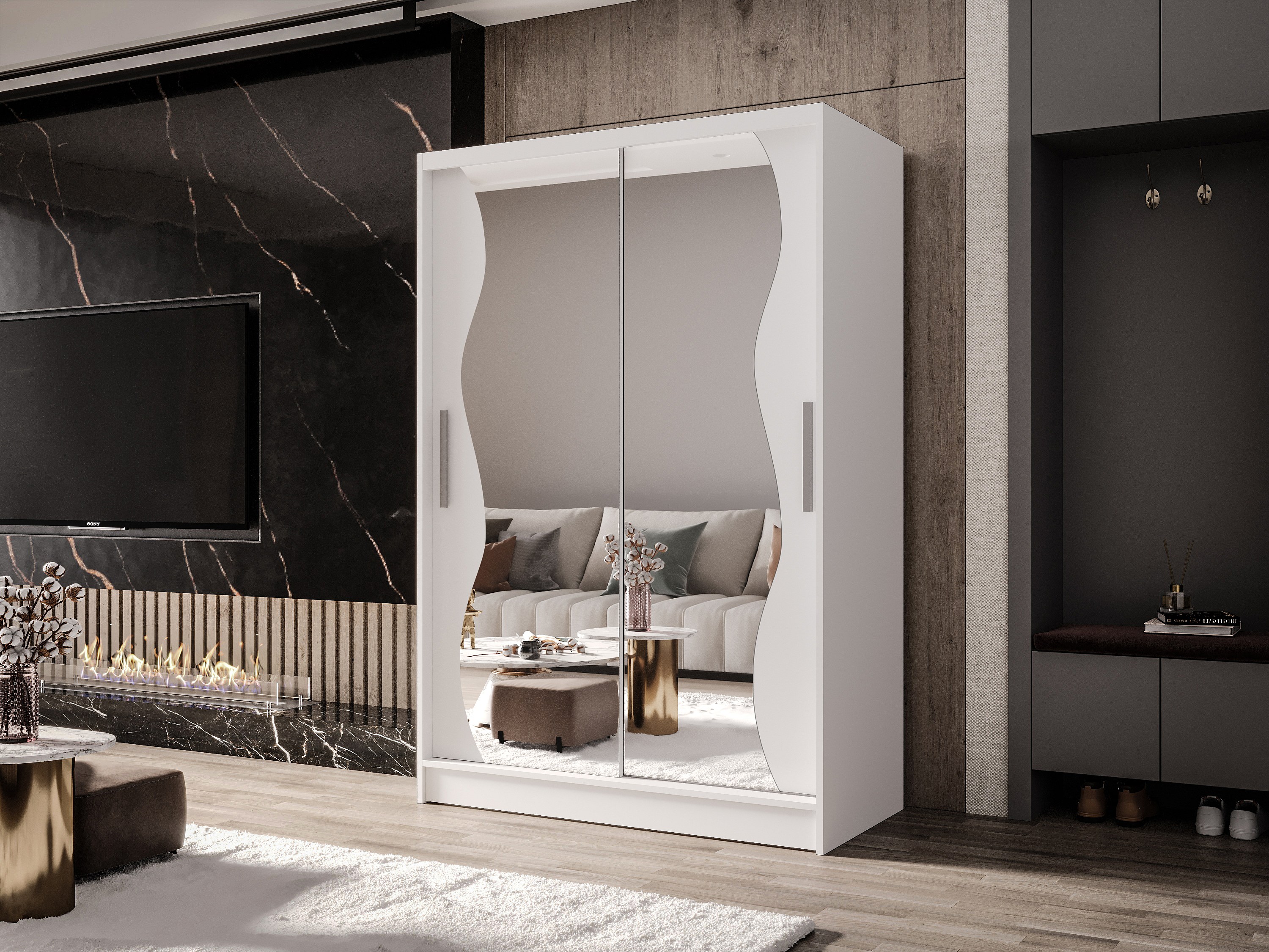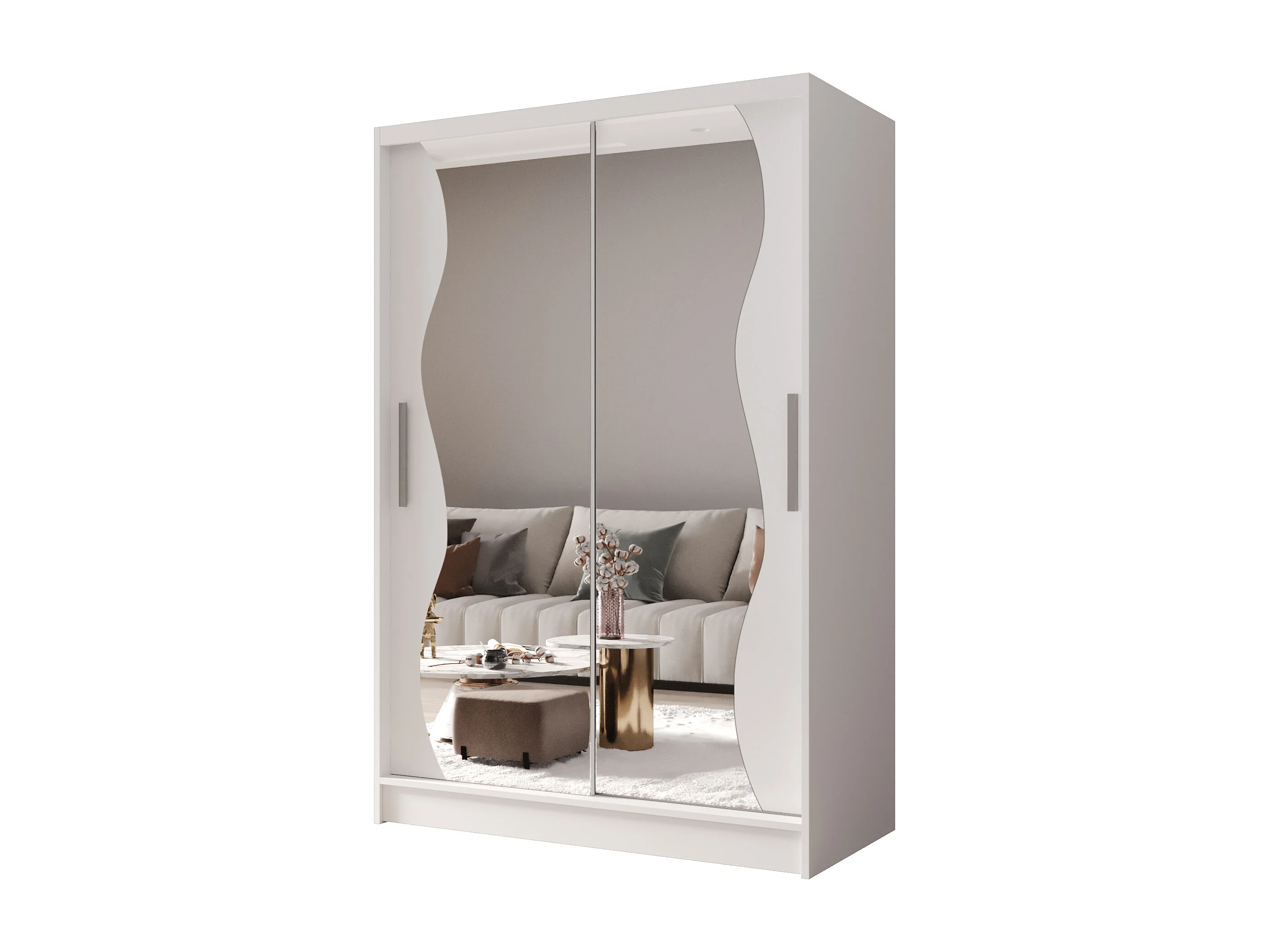 Zweitüriger Schiebeschrank mit Spiegel MESA MS Weiß mit Regalböden und Kleiderstange