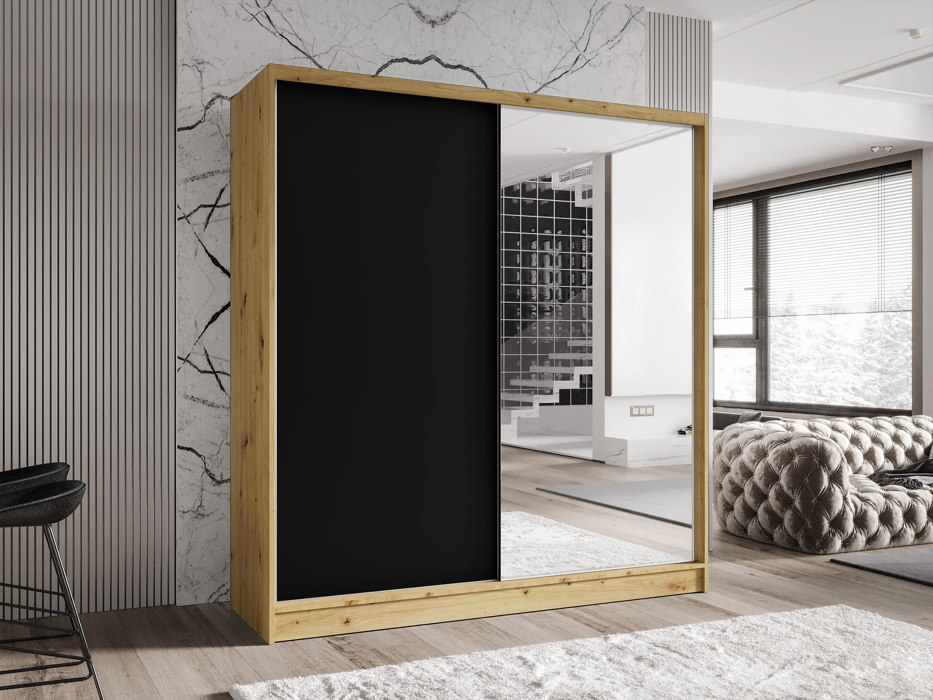 Zweitüriger Schiebeschrank mit Spiegel TORONTO T1 Artisan/Schwarz