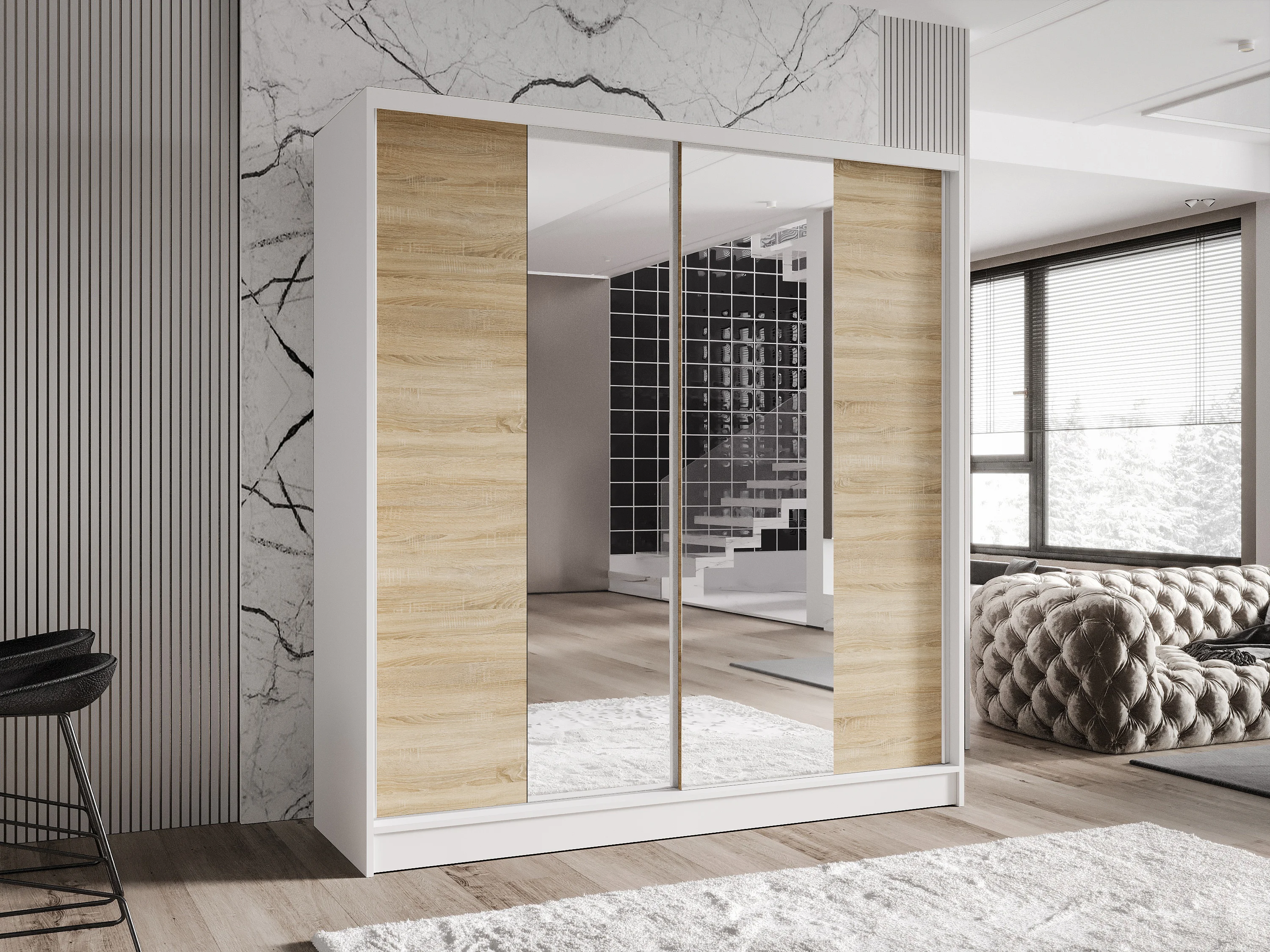 Zweitüriger Schiebeschrank mit Spiegel TORONTO T2 Weiß/Sonoma