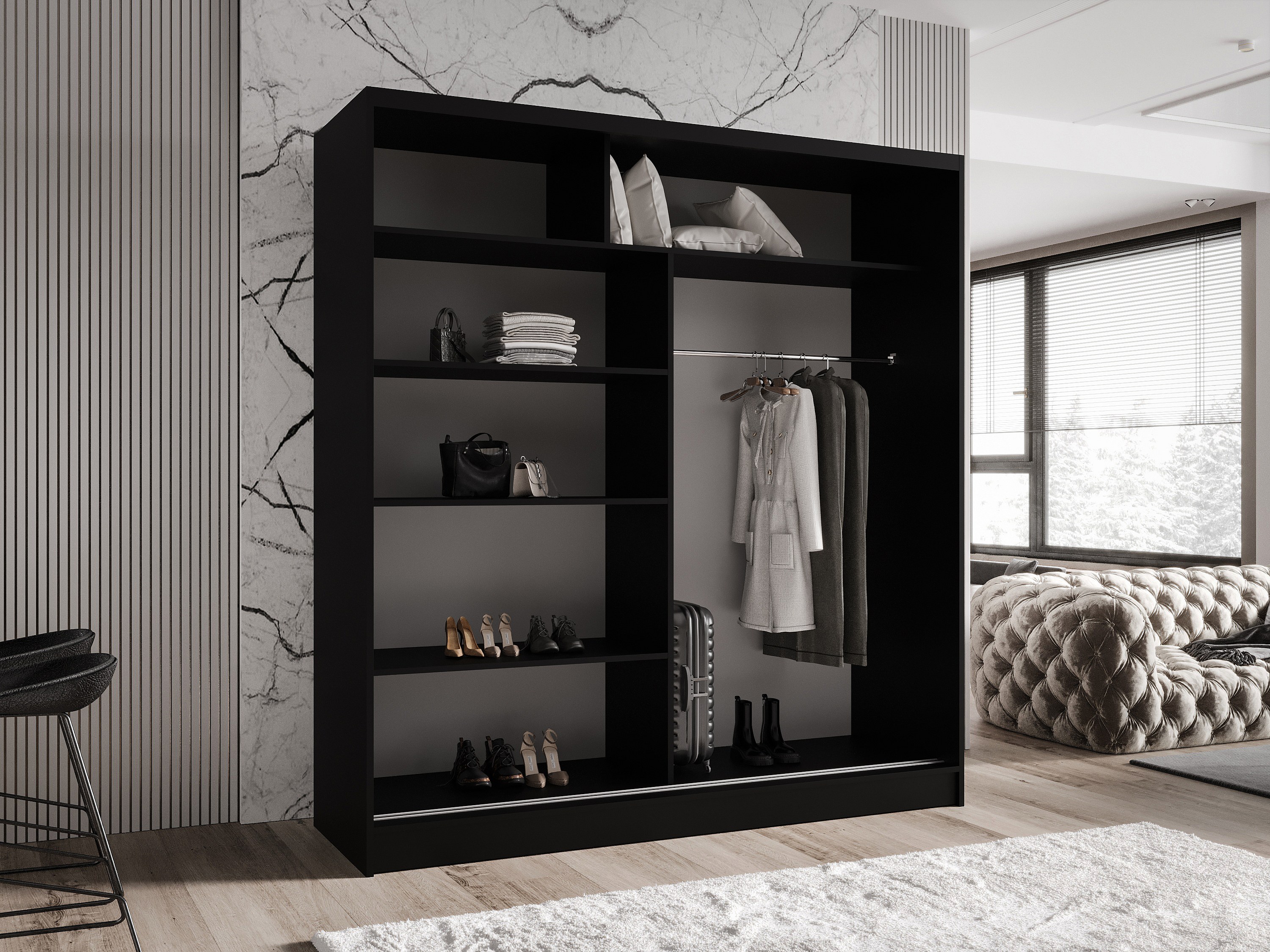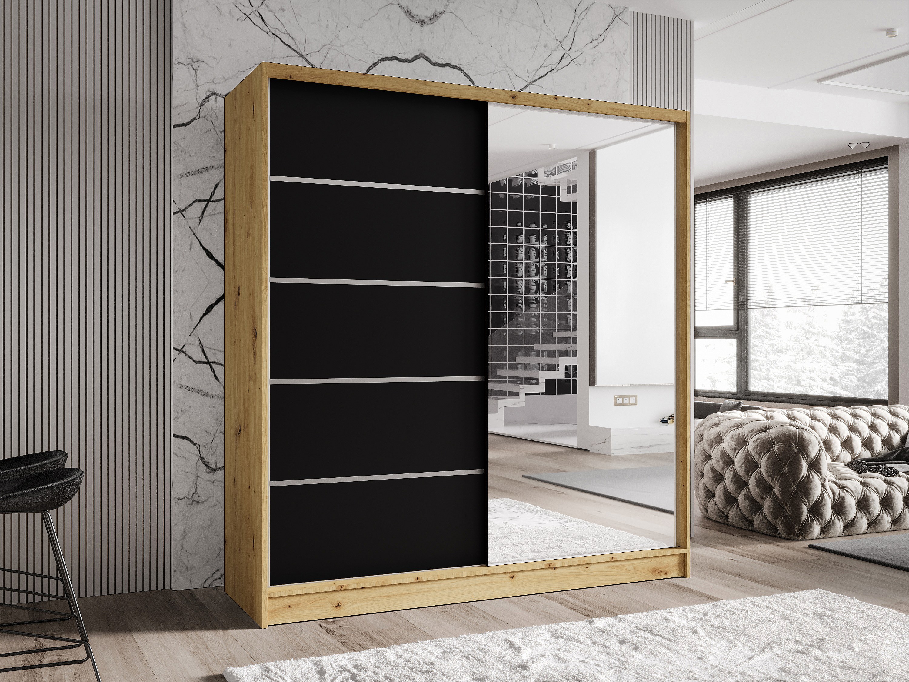 Zweitüriger Schiebeschrank mit Spiegel TORONTO T3 Artisan/Schwarz