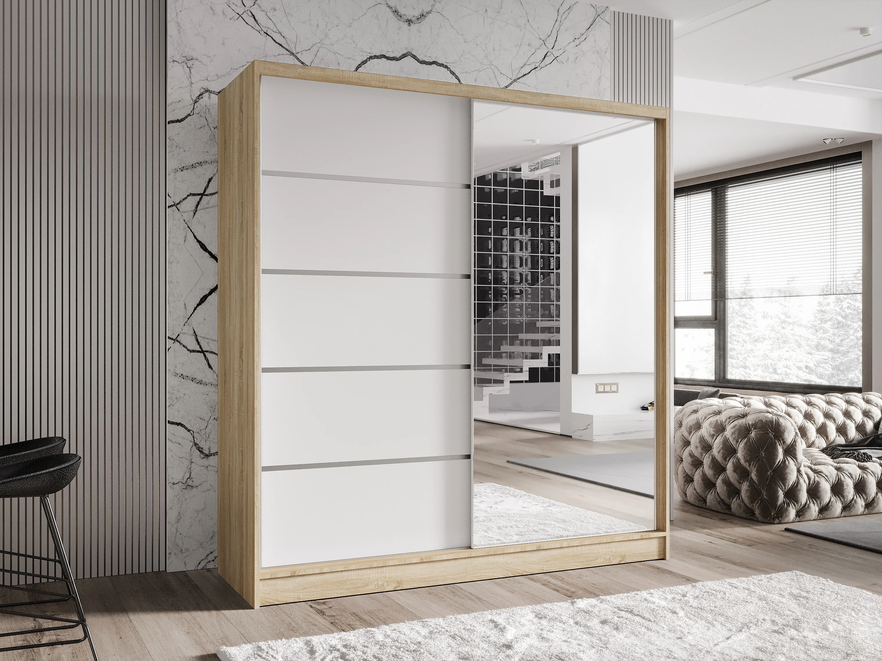 Zweitüriger Schiebeschrank mit Spiegel TORONTO T3 Sonoma/Weiß