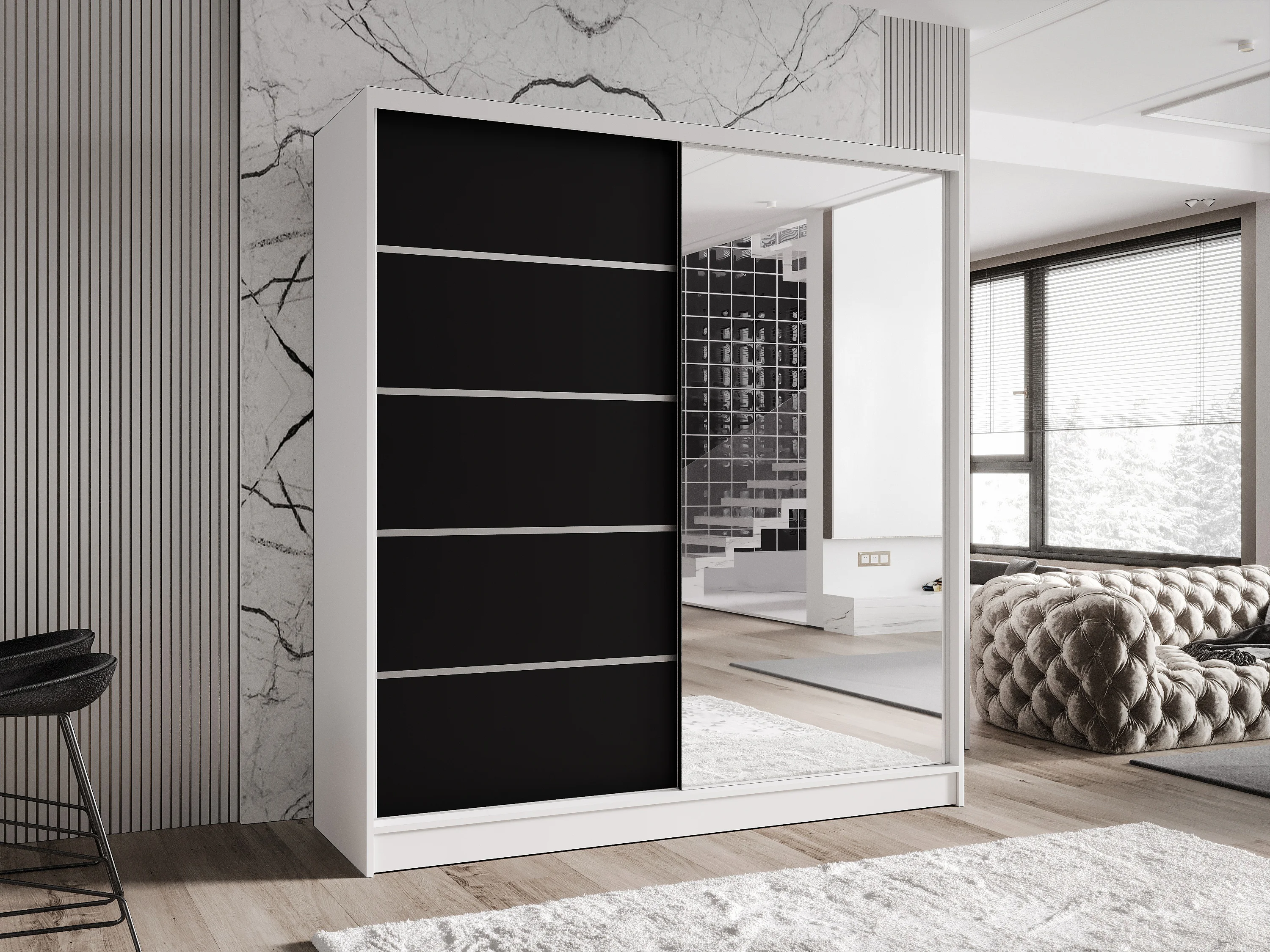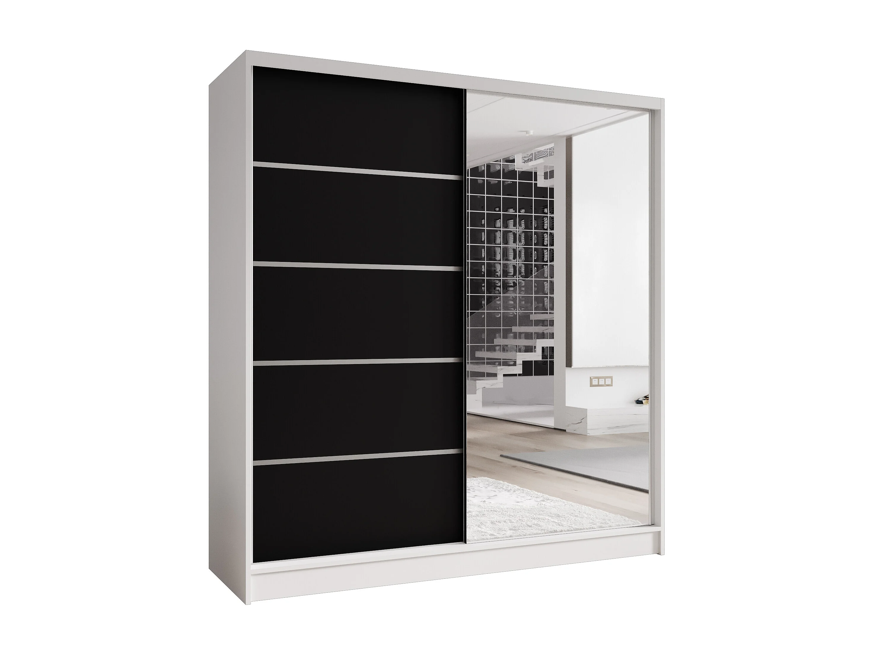 Zweitüriger Schiebeschrank mit Spiegel TORONTO T3 Weiß/Schwarz