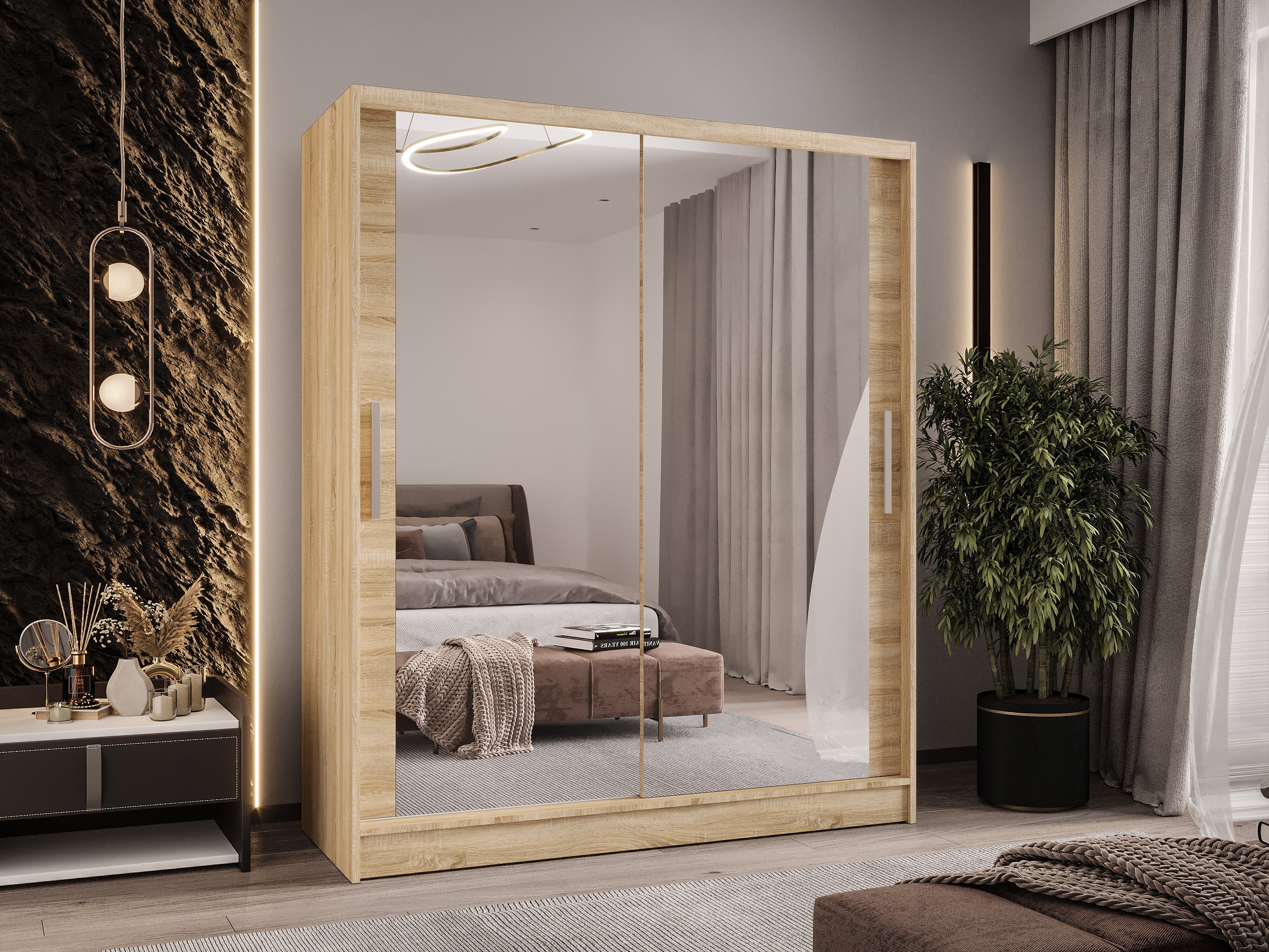 Zweitüriger Schiebeschrank mit Spiegel WIENNA W11 Sonoma