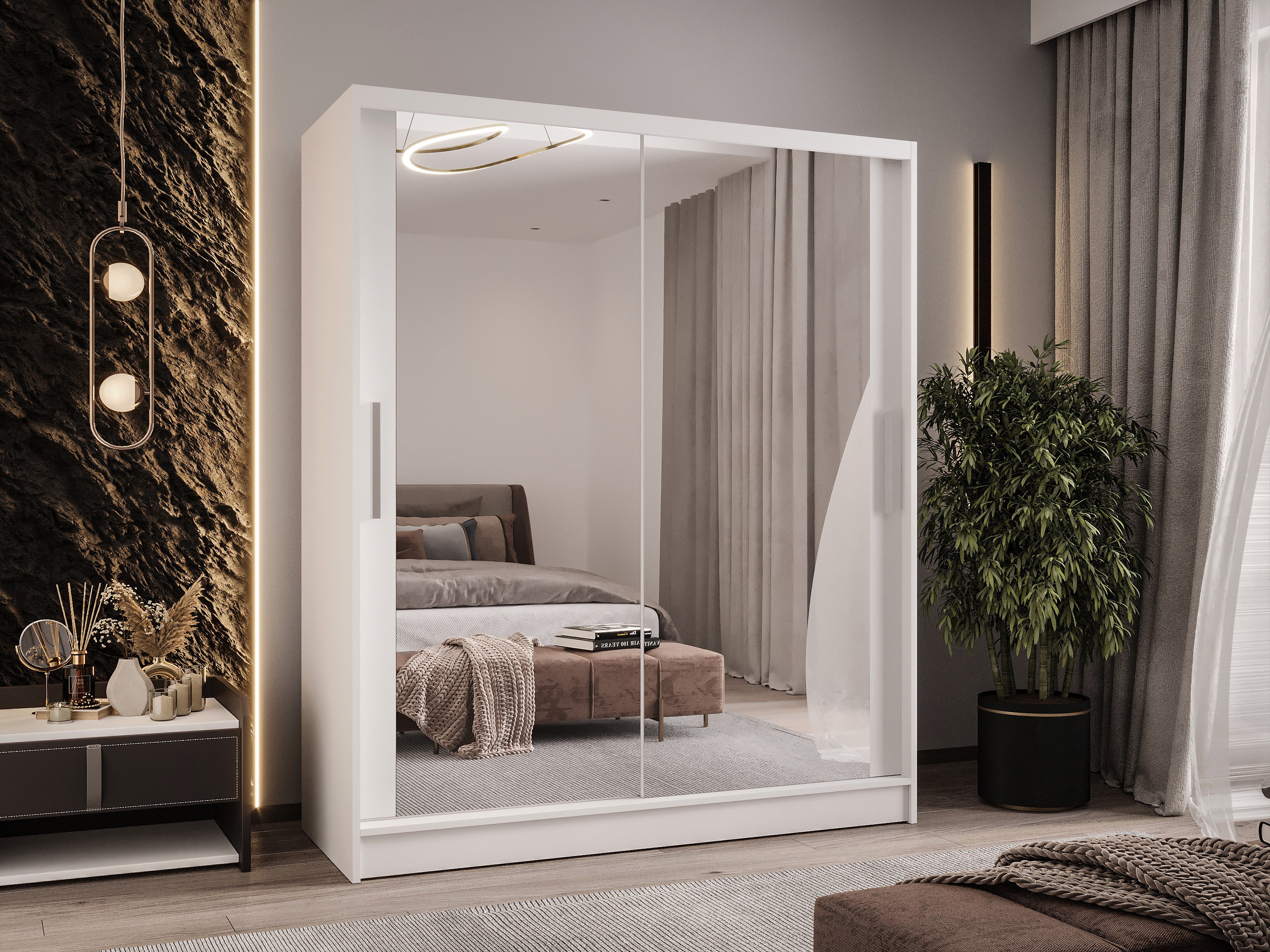 Zweitüriger Schiebeschrank mit Spiegel WIENNA W11 Weiß