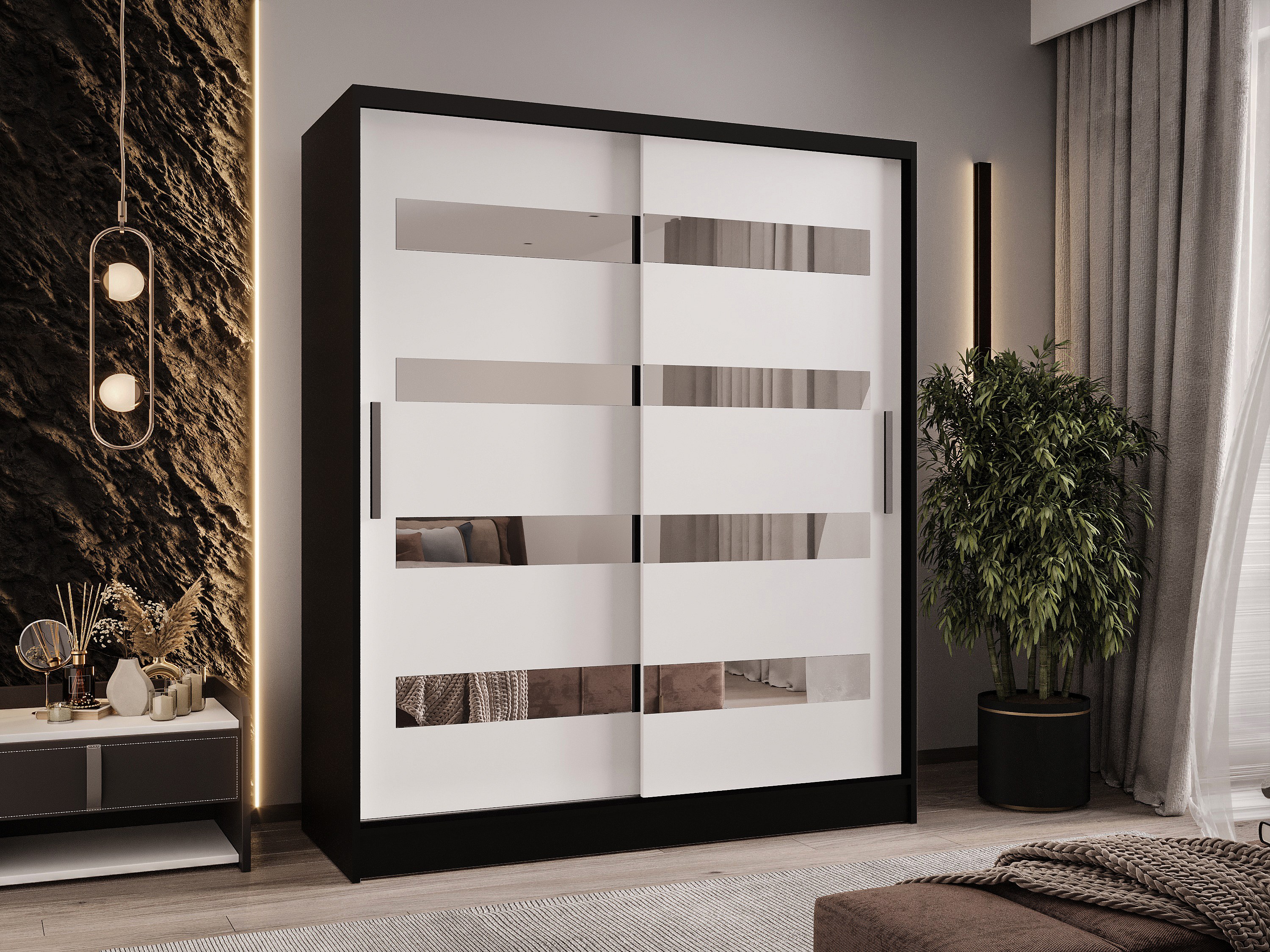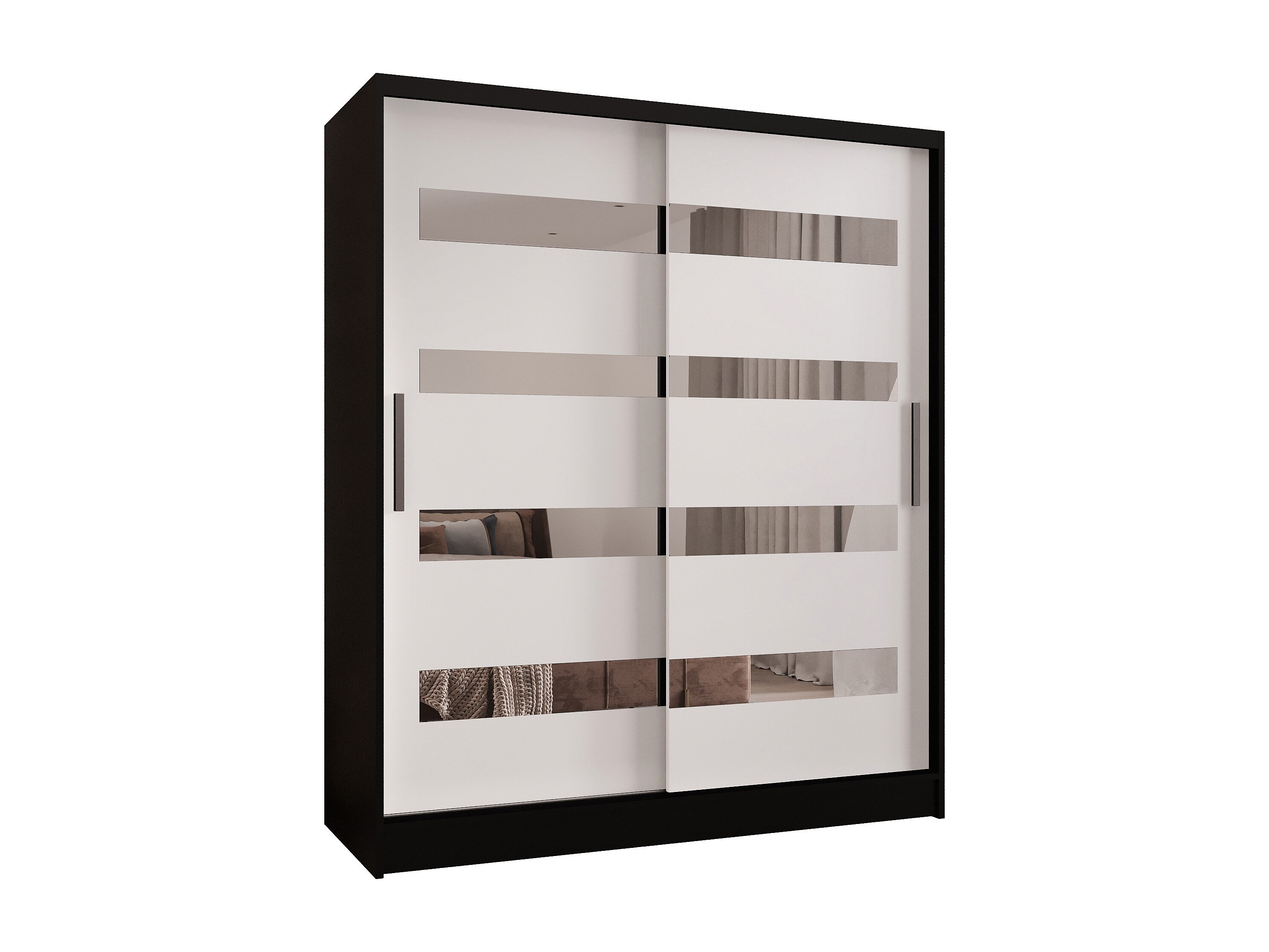 Zweitüriger Schiebeschrank mit Spiegel WIENNA W13 Schwarz-Weiß