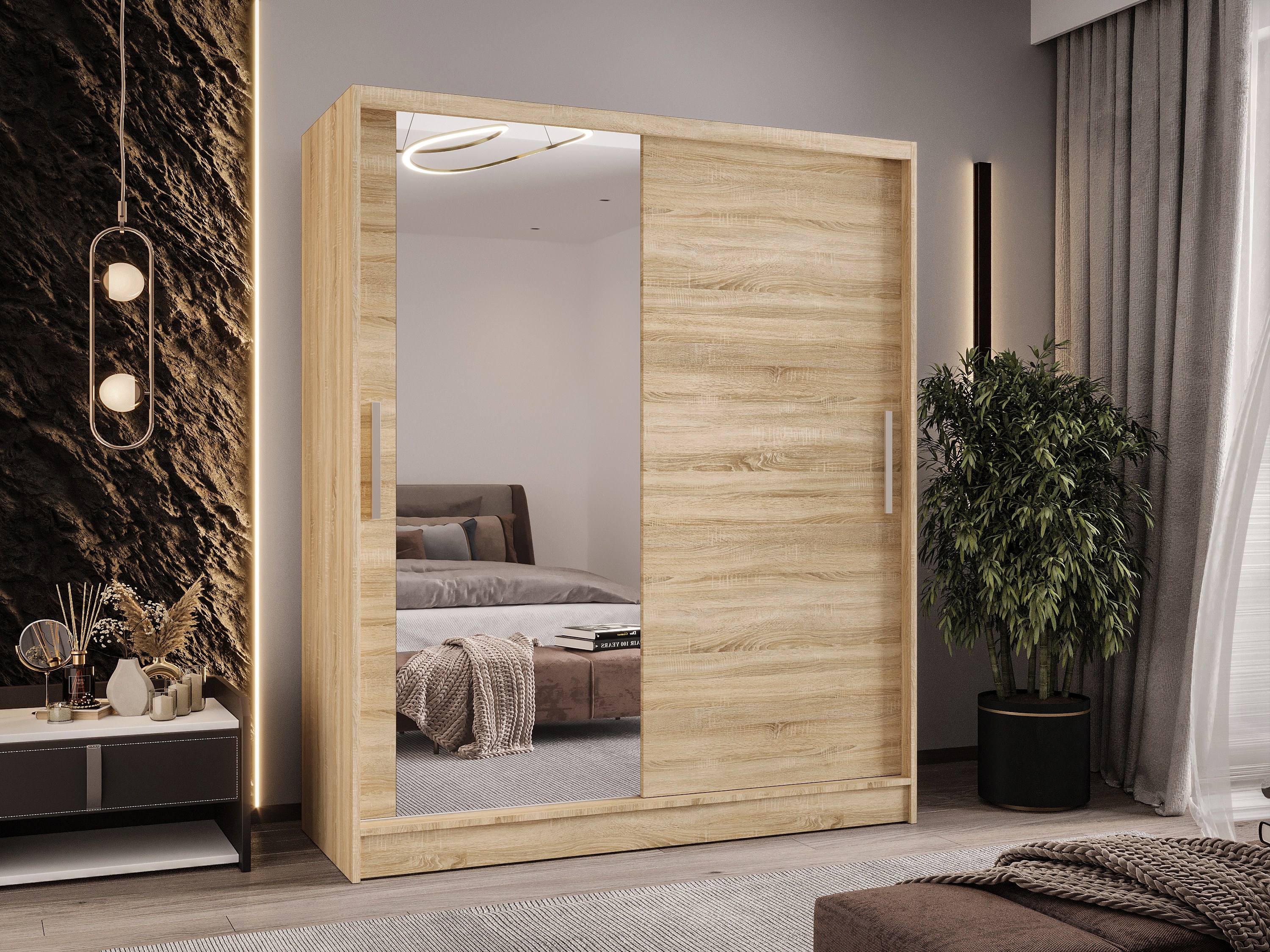Zweitüriger Schiebeschrank mit Spiegel WIENNA W6 Sonoma
