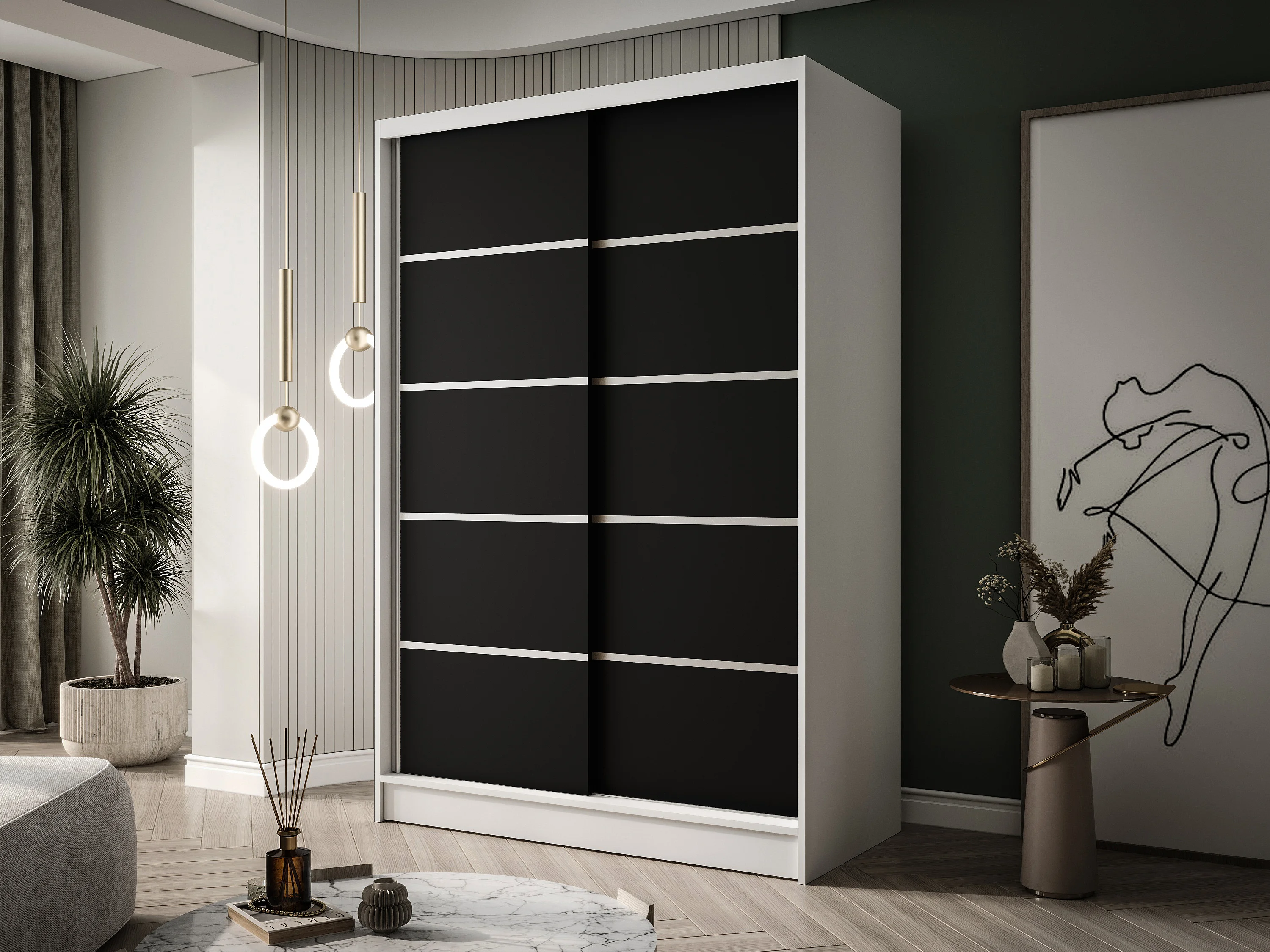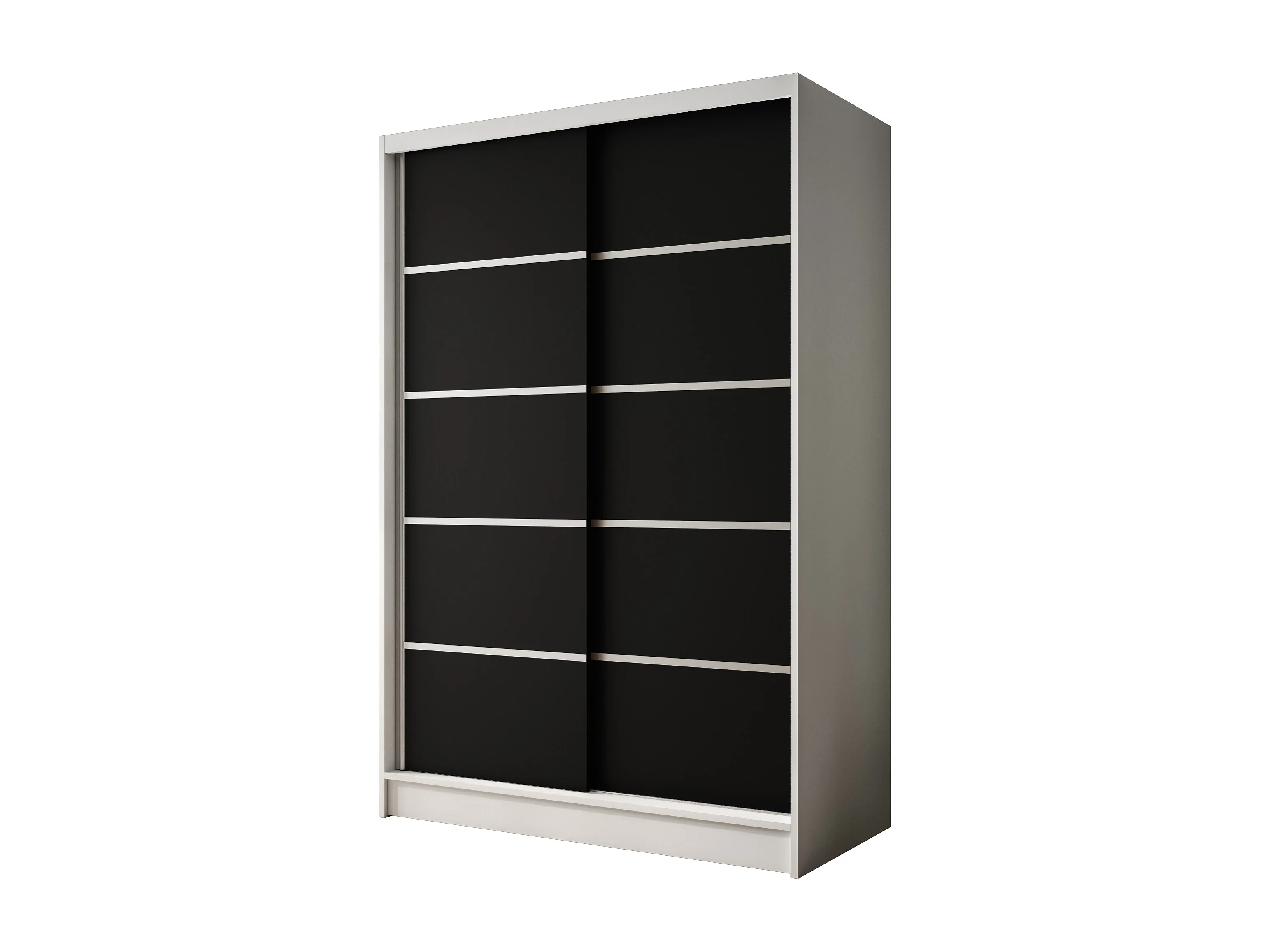 Zweitüriger SchiebeschrankLAUSANNE L4, Regalböden und Kleiderstange (Weiß/Schwarz)